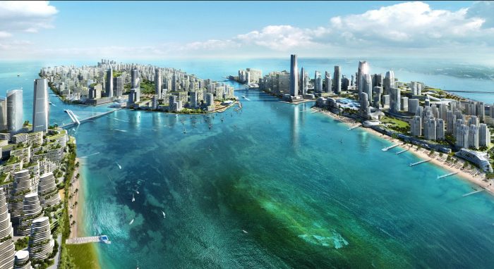 Sasaki associate: The strategy was to create a symbiotic relationship between the natural and constructed environment. For this purpose, they emulated the ecology the coasts in the edges of man-made islands by using mangroves in wide ranges and shallow mudflats and coves to save the existed nature of the region and protecting 250 hectares of shallow-water seagrass.