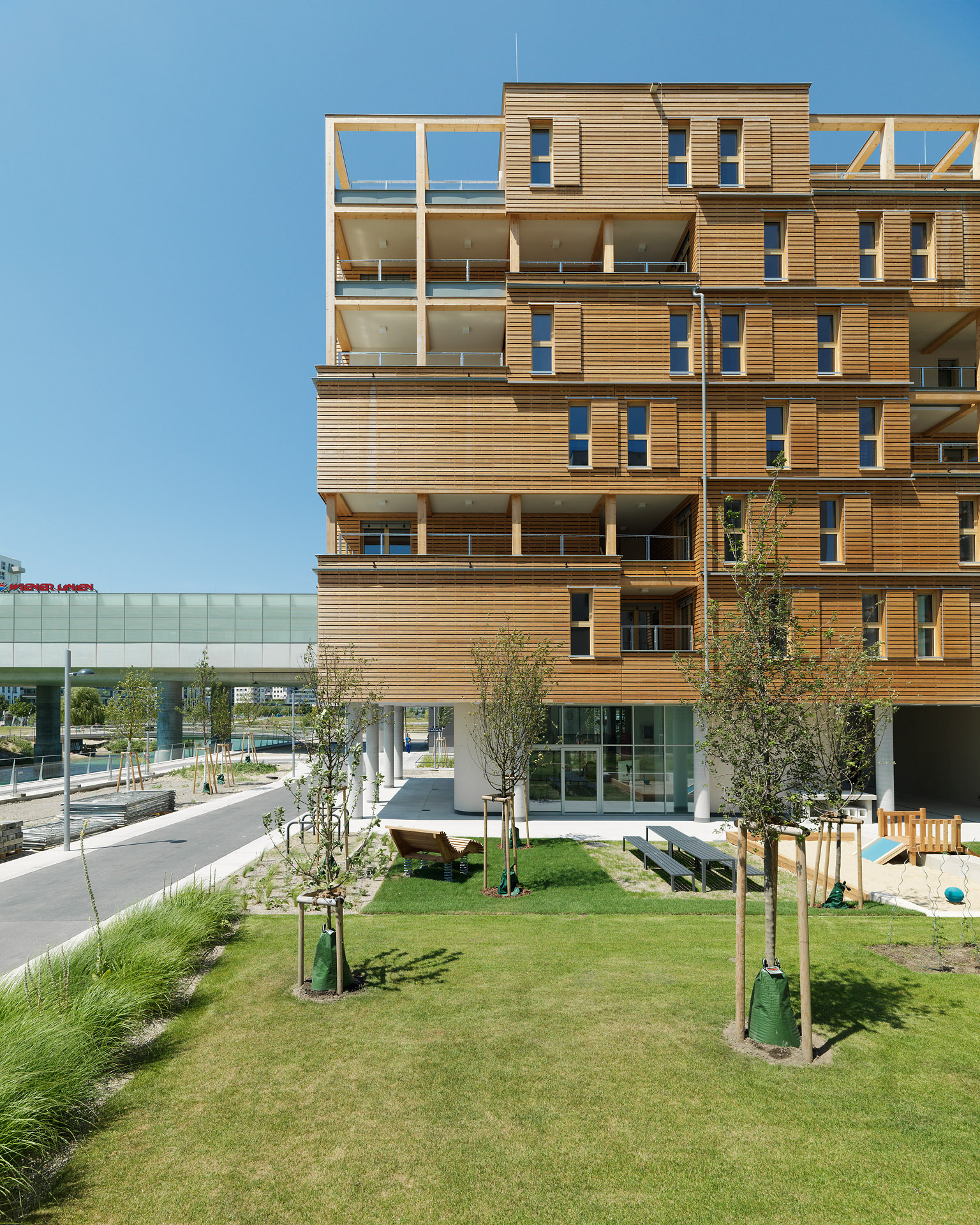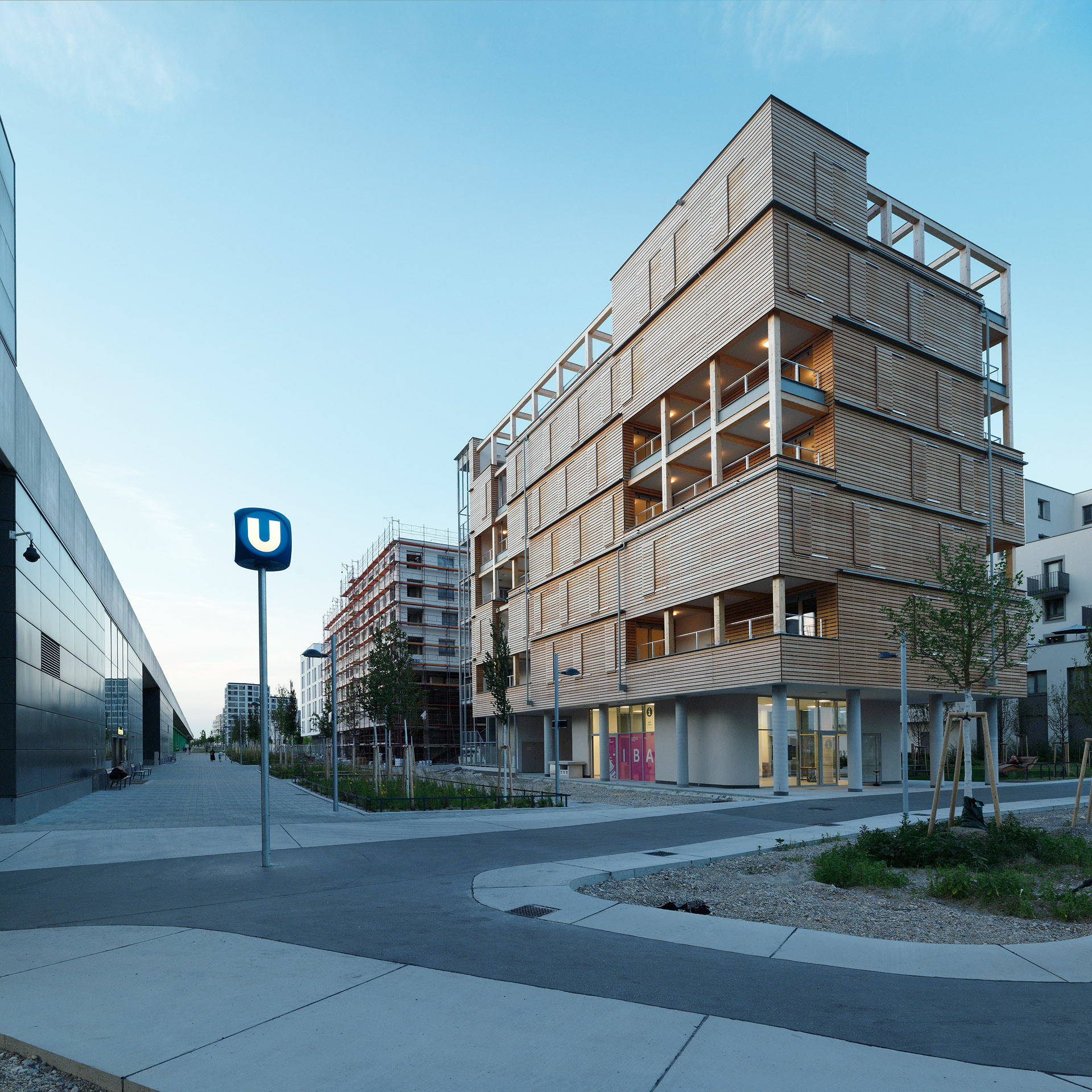 Forum am Seebogen Apartments, With the contribution „Forum am Seebogen“ the architectural studio heri&salli was able to win the concept competition for the “Townhouse open to different usages” in Aspern-Seestadt. The building complex will emerge on the 800 m2 building site H7A in the quarter “Am Seebogen” in the new Vienna district “Seestadt”.