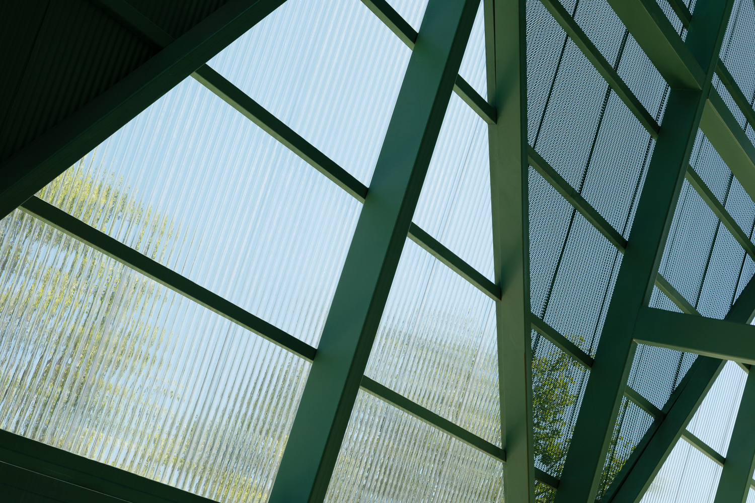 The Four-Roof Pavilion’s defining feature is its expansive roofs, which establish its unique architectural identity and generously provide shade and sheltered spaces for the local community to gather. The ingenious placement of transparent polycarbonate panels, perforated metal panels, and solid metal panels creates varying degrees of transparency, allowing natural light to filter in while infusing the interior with ambient illumination.