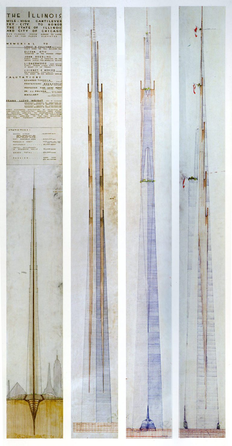 Frank Lloyd Wright Reveals His Unique Intellect in Sketches: Doughnut-shaped Schools, Skywalks, and Mile-High Skyscraper