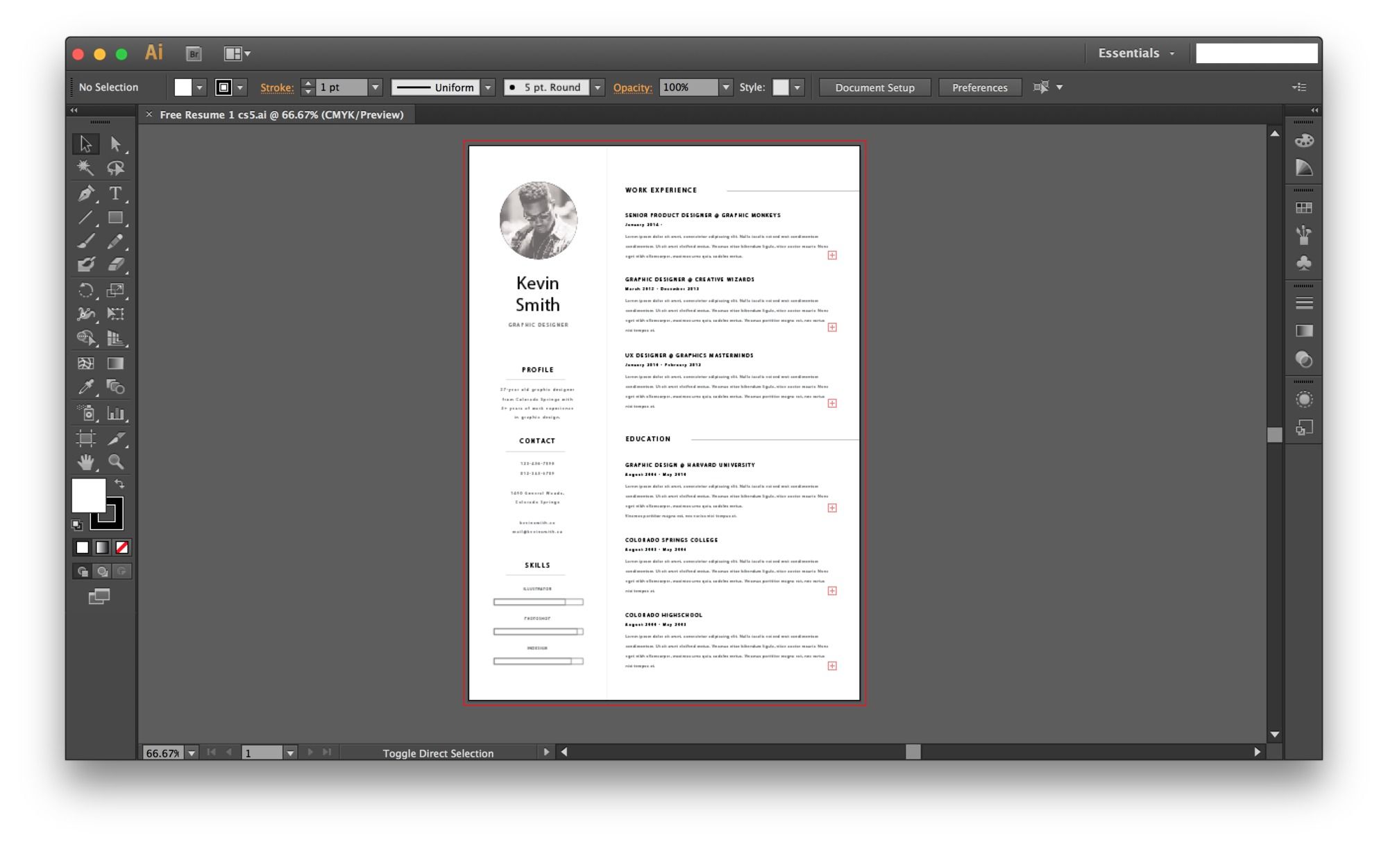 A mighty resume template for free download which can be used for your personal resume. This free resume template can be edited with Illustrator software only.