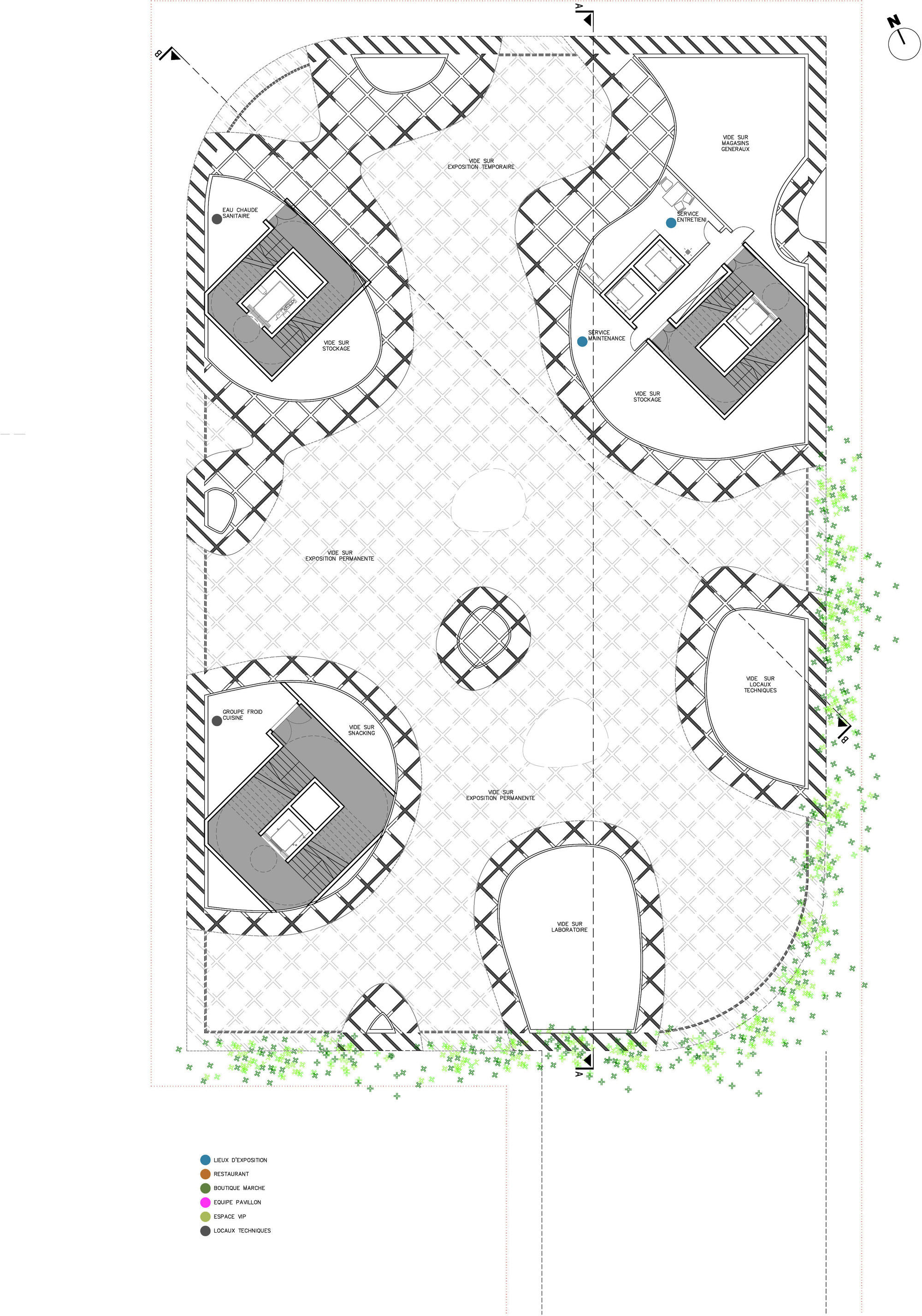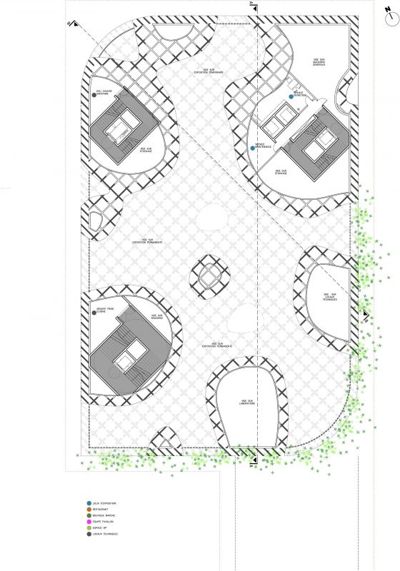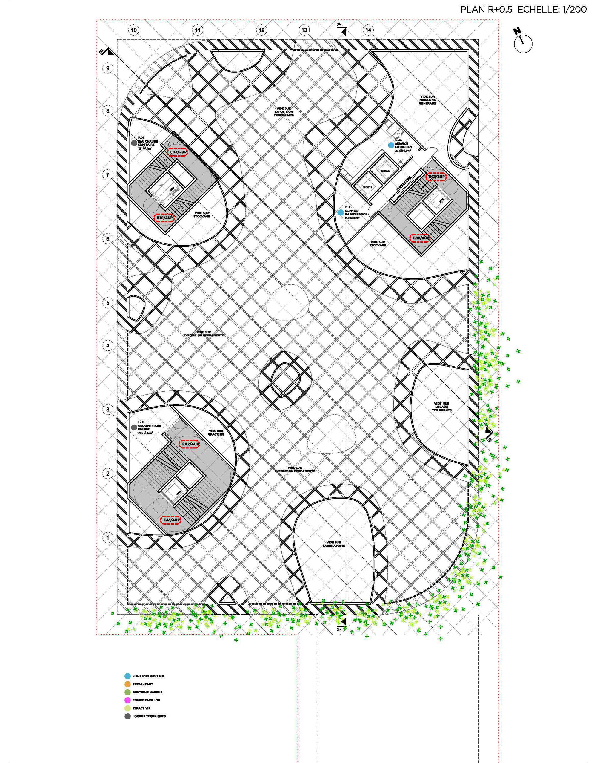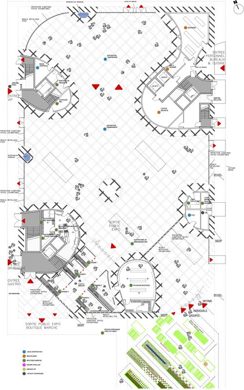 The main floor of the pavilion shelters an exhibition that gathers around France’s food production. In the upper level, a restaurant provides fresh vegetables grown on-site using applicable hydroponic procedures & aromatic herbs implanted on the terrace.