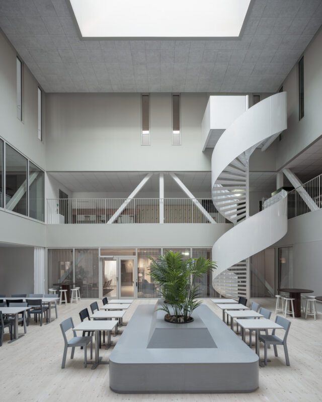 By elevating this largest program element, the church hall, the ground floor can be open, free, transparent, and approached from all sides. The ground floor’s smaller sacral space is seamlessly connected to the exterior square; an extrovert hall apt for social purposes, from coffee to flea markets. Above the two educational floors are a roof garden and a large multipurpose hall. A space with views over the city, the ocean, and the sky. The building opened in October 2023.