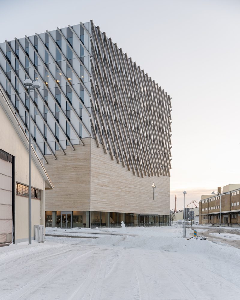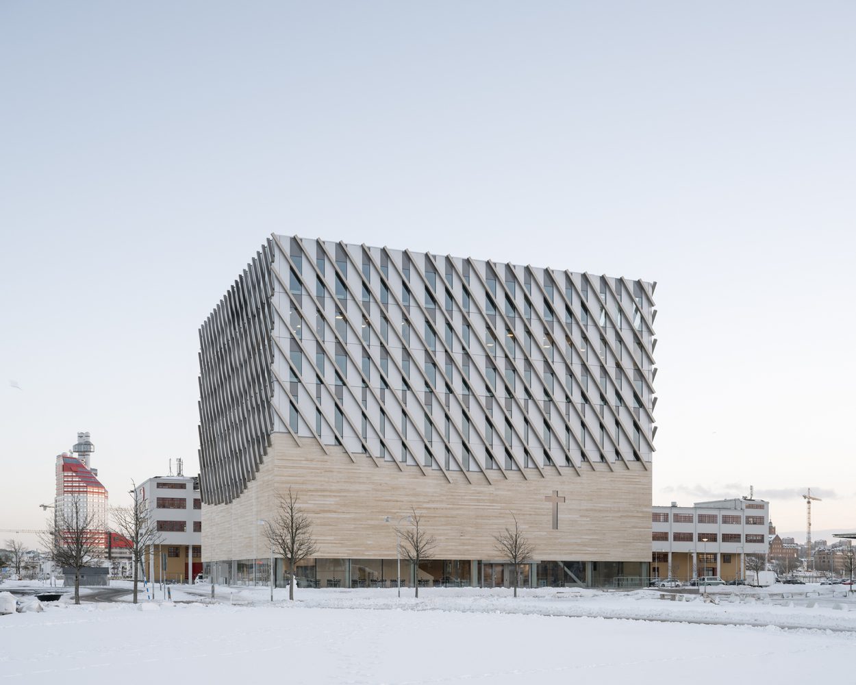 Frihamnskyrkan – The new church building in the redeveloped docklands, for Gothenburg’s multicultural Pentecostal parish, is a large mixed-use facility. The building embodies an extensive program consisting of three sacral spaces alongside spaces for children, education, music studios, café, sports hall, a parish kitchen for culinary exchange, and not the least a charity grocery hand-out.