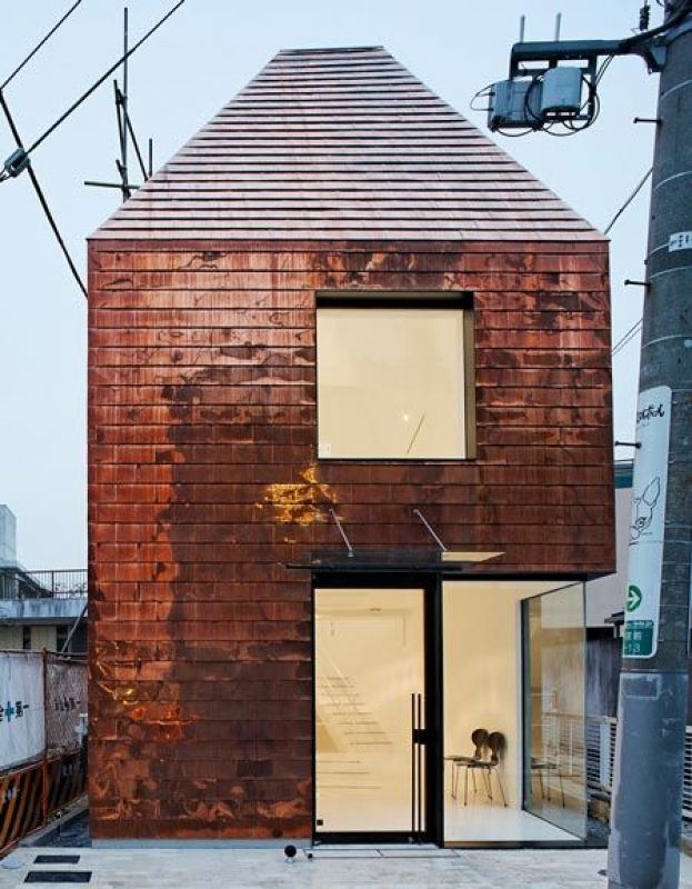 I experience something like chagrin as I look at this beauty parlour called Fujisubo (Barnacle) in the Omotesando district of Tokyo, Japan. It’s not because of any fault in this piece of experimental architecture by Yoshihiro Hirotani and Yusaku Ishida- who make up the firm Archivision. Instead it is because all I can think about is how someone’s going to steel that copper cladding. What a world I live in. I say ‘I’ because I don’t know what sort of world you live in, but I’m fairly up-to-date on mine, and in mine, copper gets stolen. But perhaps Japan is different. Anyways.