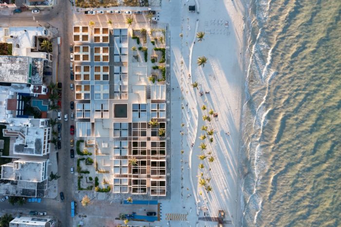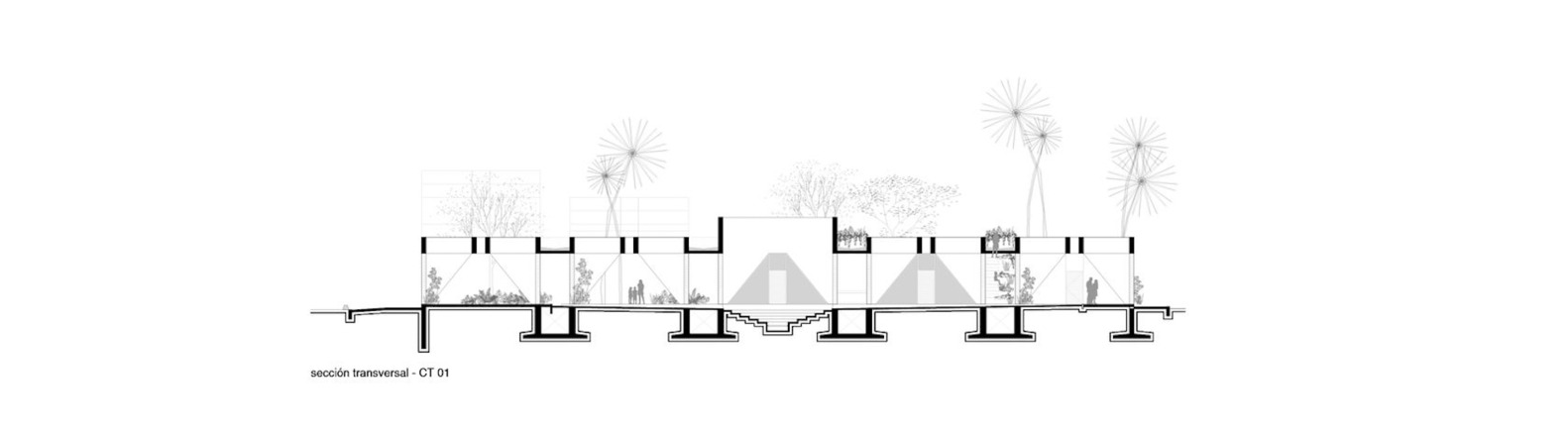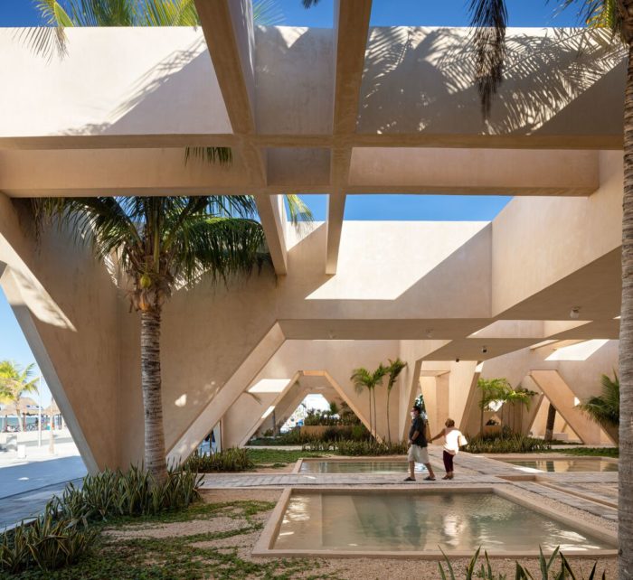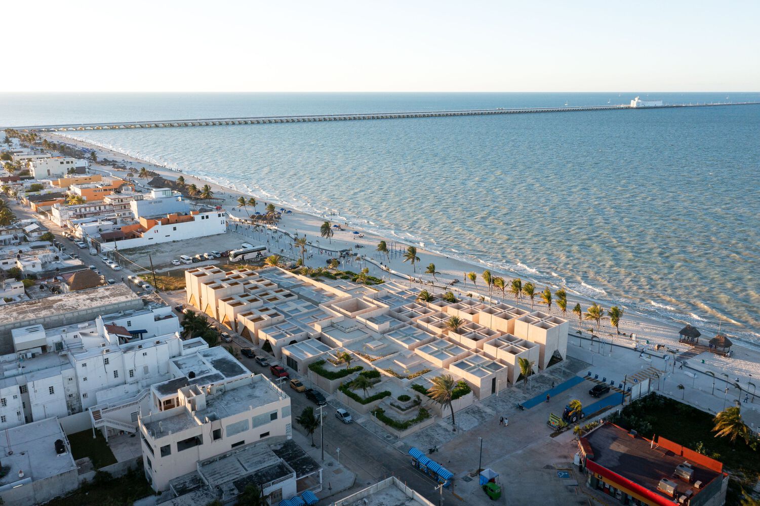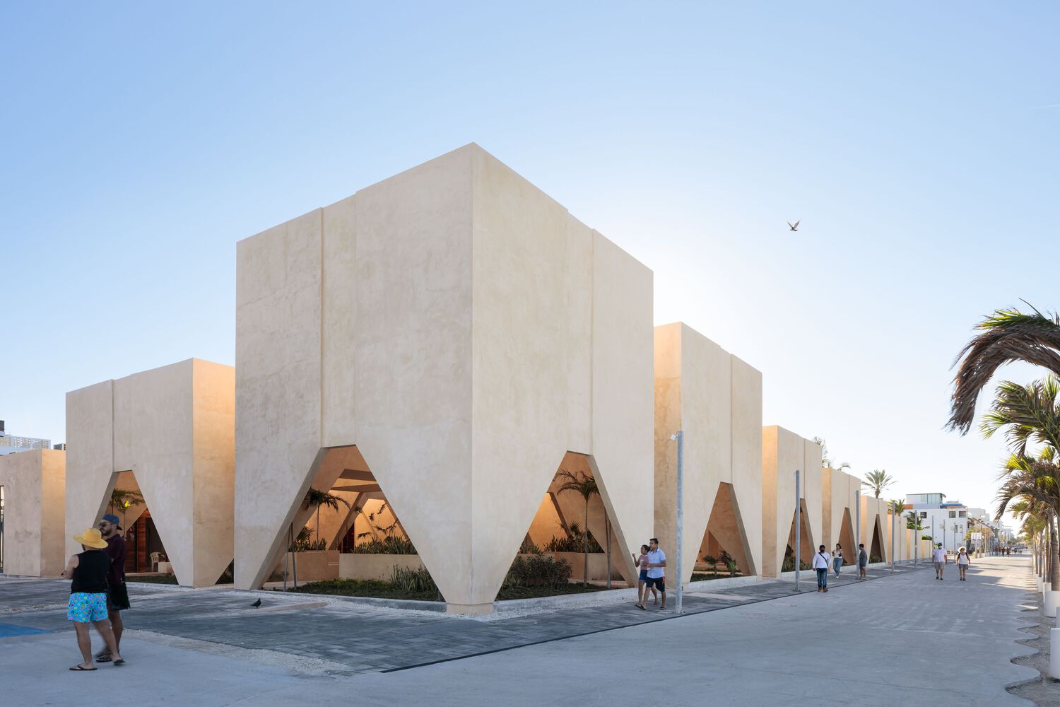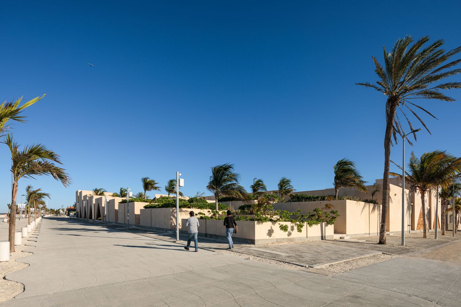 The Geology Museum in Progreso, Yucatan is not just an ordinary museum; it’s a fusion of culture and public space, all designed as a cohesive unit. Located along the coast and close to the customs dock of Progreso, the museum is a collection of volumes, each with different heights, arranged in an organized grid. These volumes function individually and together, creating inviting spaces within them, shaded areas for relaxation, and a stunning landscaped roof that spans diagonally from corner to corner above the museum spaces.