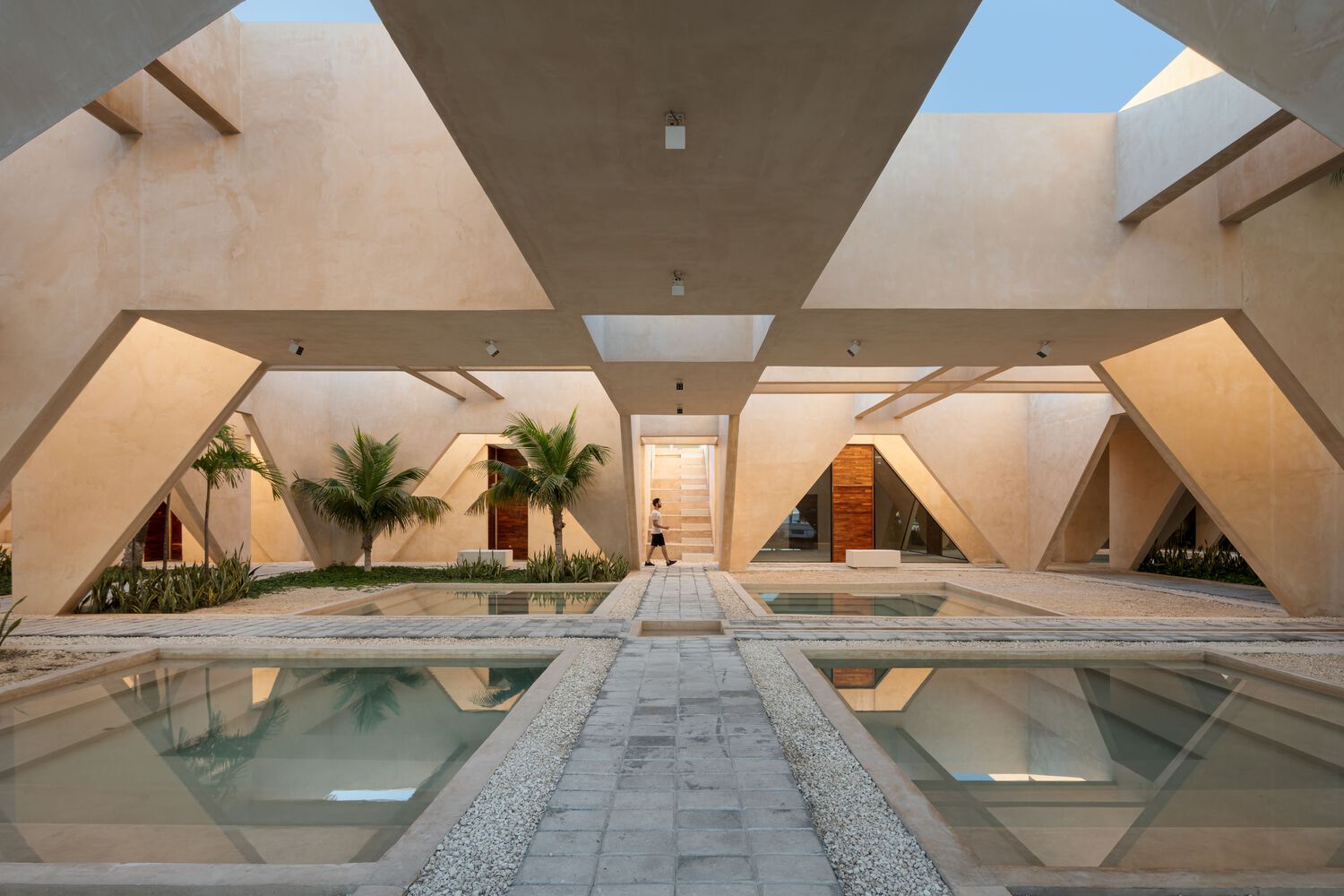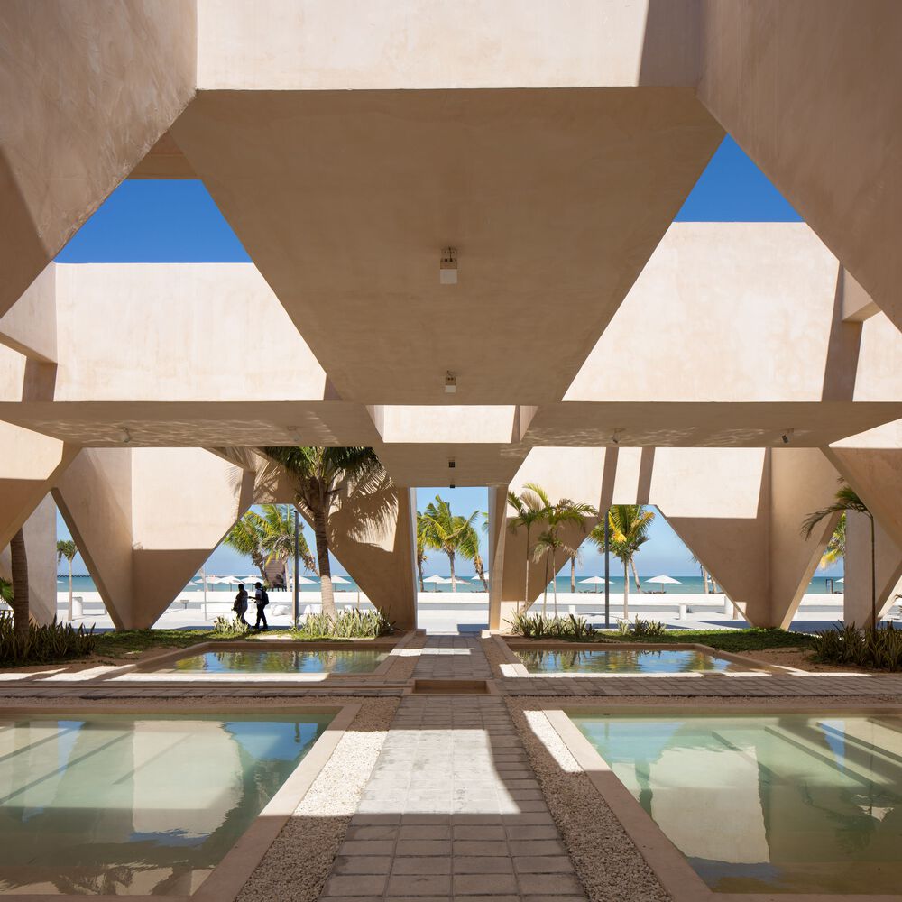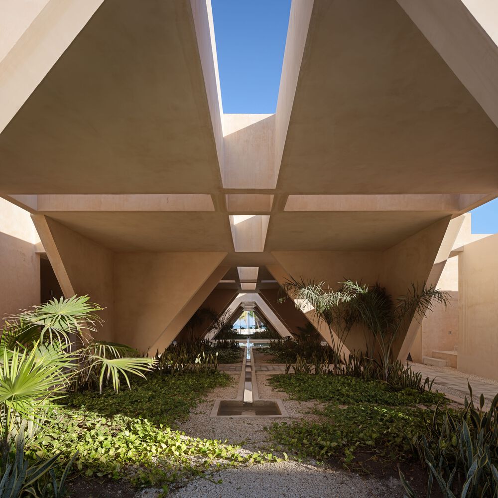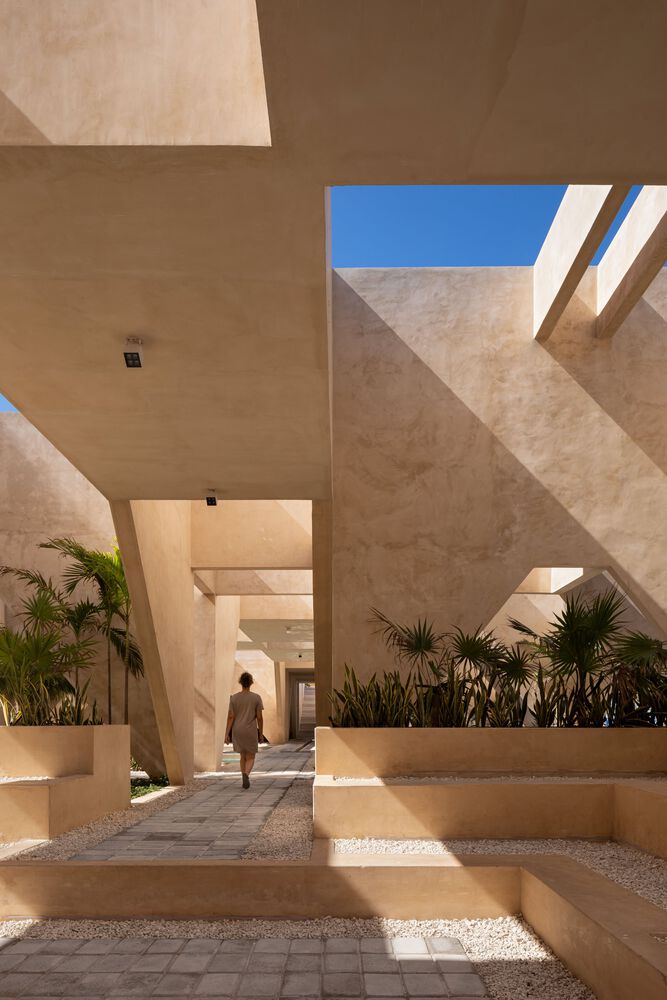 The design elements, such as angled arches and monolithic volumes, pay homage to ancient Mayan architecture while resembling the natural structures in the region, like bodies of water. To ensure durability and low maintenance costs, the museum is entirely covered in chukum, a natural finish of Mayan origin. This material is locally sourced, easily accessible, and naturally water-resistant.