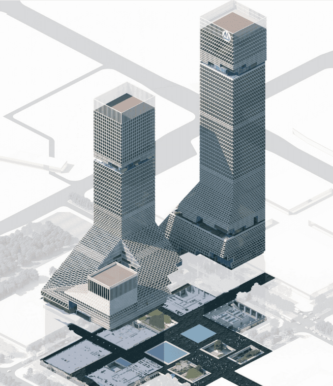 The vertical element (tower) and the horizontal (plinth) merge into single volumes with a unifying character and language, and the central element of the composition becomes a public square. In order to build a city, we need spaces, not only objects.