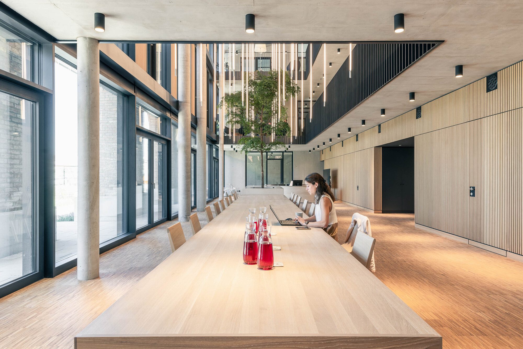 The design outlines a synthesis of respectfully preserved existing and leading-edge new architecture: Careful considerateness and consistently modern typology converge in a made-to-measure project that lets a freely natural, welcoming in-between take root in the center of an urban design task.