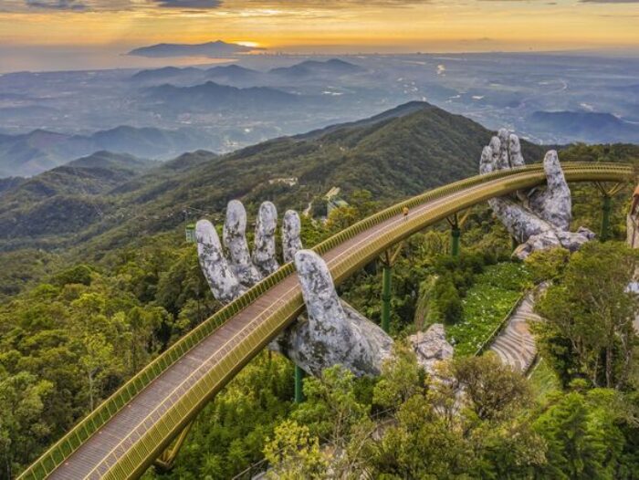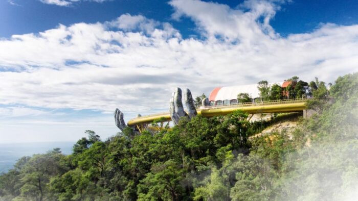 Standing 1400 meters above sea level, this bridge (also known as Cau Vang in Vietnamese) is part of a $2 billion investment to boost the tourism industry in the town of Danang. It offers visitors amazing views of the majestic Ba Na Hills and the countryside.