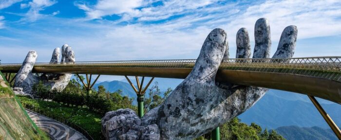 The design is to make visitors feel like they are walking in the sky “among the foggy and fairy-like lands of Ba Na Mountain”, as stated by Vu Viet Anh, design principal at TA Landscape Architecture. However, what makes the bridge truly exceptional is none other than the giant stone hands supporting it and resembling the “hands of Gods pulling a strip of gold out of the land.”