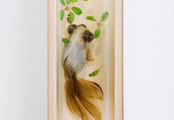Tediously painted, the Goldfish Culture paintings by Riusuke Fukahori take on a life of their own, representing a living sculpture frozen in time. The way this three-dimensional effect was produced is through the layering of paint and clear resin. As the artwork is built up, each brush stroke carefully captures the delicacy of a fish swimming through water, where their fins become effortless blurs of motion. There’s something peaceful about watching a fish swim, where the complexity of the motion is nearly lost due to its elegance. I believe that is an excellent way to describe the artworks by Riusuke Fukahori as well. We may not see each individual layer of paint and resin, but we do see the final result of his meticulous work and in my opinion is nothing short of amazing.