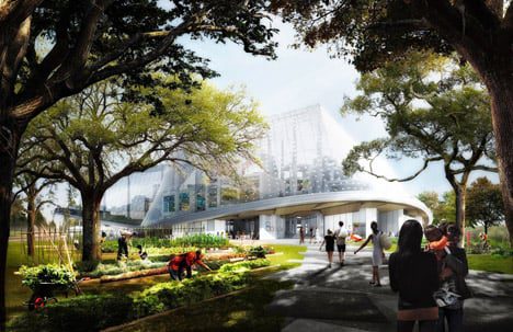 Google’s futuristic campus will have a series of huge, transparent canopied buildings filled with open spaces for Googlers to congregate, instead of traditional walls or roofs, and their interiors will have light-weight, movable components, so the layout can be changed upon request. Google says the large transparent canopies are designed to control the climate while still letting in light, air, and even some of the great outdoors. The plan includes bike paths and retail opportunities for local businesses such as restaurants, cafes, and shops under the canopies.