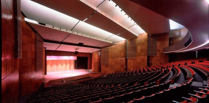 Detailed studies were conducted on adaptations and features required for the Auditorium Theatre. The acoustic architecture design was performed according to various studies that allowed the correct definition of angles and ceiling within the room, so that the voice of a person or the sound of a guitar up to a symphonic orchestra could be heard with perfect acoustics from any point or corner of the room. These studies were performed with a computer program called CATT – Acoustic V8-0a, at MIT in Boston.