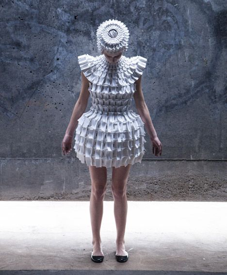 They can, at any time, be deconstructed and reformed into a new garment or similar or completely different form. As one glances through the different pieces, it is possible to pick out arches, rose windows, turrets, and many other referential forms.