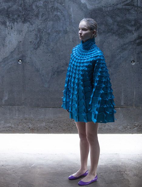Formed using a series of tabs and slots which are cut using a laser into small, rectangular pieces of soft, UV and water-resistant foam. This method negates the need for adhesives or stitching and makes the garments essentially infinitely reusable.