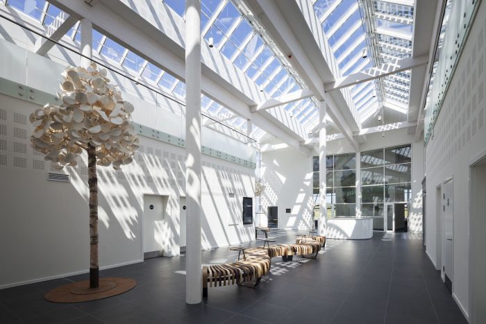 We explore circular sustainability through multiple sustainable strategies that are constantly informed by local conditions and the pragmatic use of resources: on-site energy production, natural technology, intelligent indoor climate, design for disassembly, clean air and daylight and a reclaim reuse renovate approach to the existing buildings and interiors.