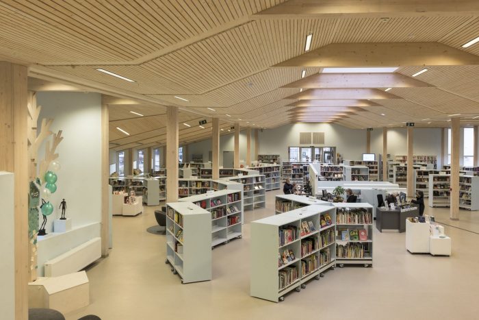 The building is organized over three floors. The main library functions on the first floor with a secluded children’s area on the second. The administration is found on the ground floor. Additionally, the building houses a café, auditorium and exhibition spaces. These are in close proximity to toilet facilities making it possible to close off this zone for evening events.