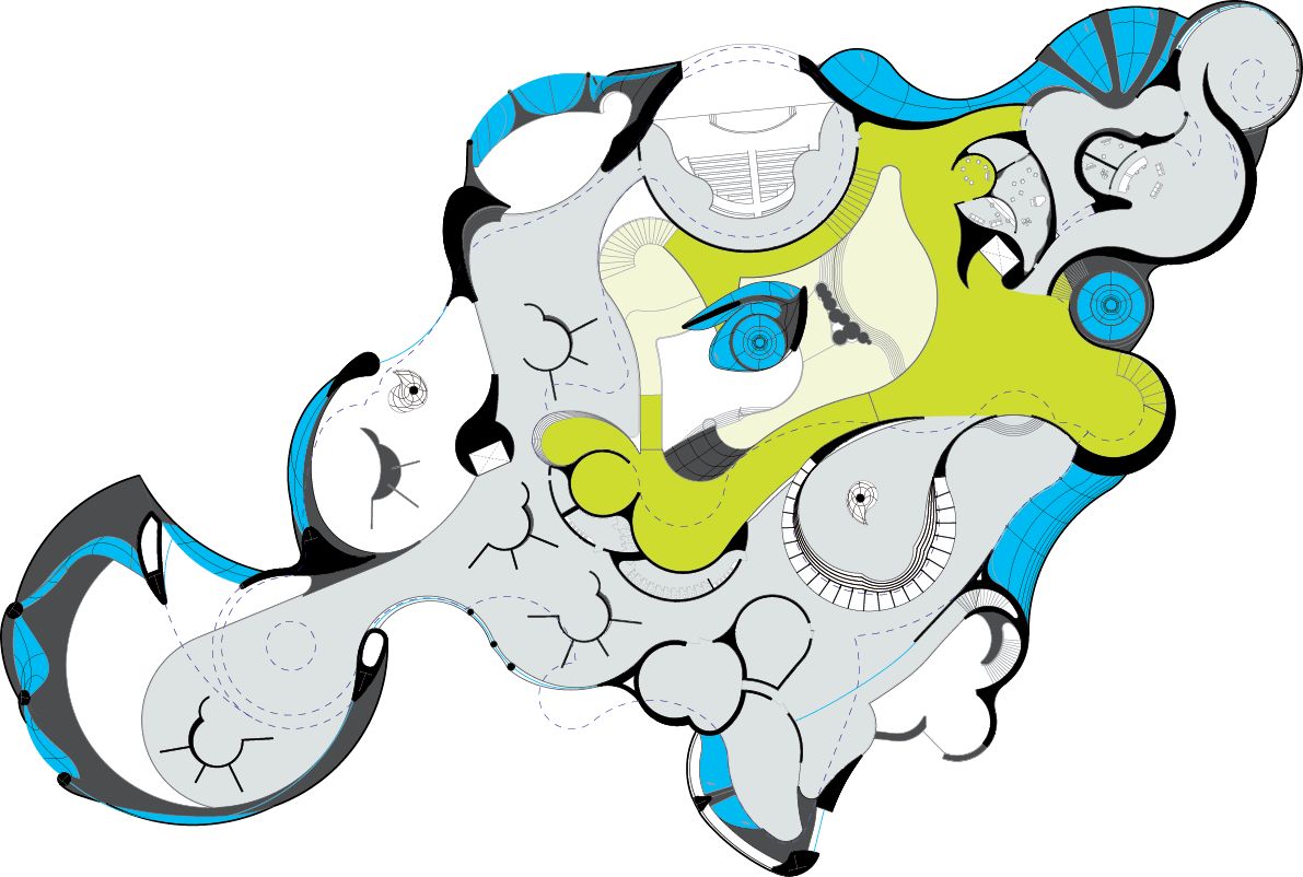 Gritty Delight demonstrates the manipulation of poché where outlines are used to define various geometric spaces, a process seen in graffiti. These outlines not only separate color but also define different characters or programs within the design. According to the designer, art, science, technology, and outreach play colorful characters or programs that formally mingle within and about the whole. In the end, the piece reflects an expression of culture that promotes a sense of freedom, youth, and adventure which plays to an exciting and new view of architecture.