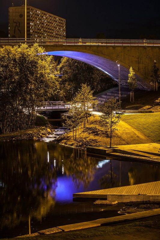 Accessibility and population safety placed significant demands on outdoor lighting within the project. LINK Landskap, in cooperation with ÅF Lighting, played a central role in the development of a site-specific lighting concept, which has created an exciting spatial dimension and identity for the park. Cooperation with the various municipal offices and city district was a significant part of the design and construction process, and the cooperation has yielded exciting results.