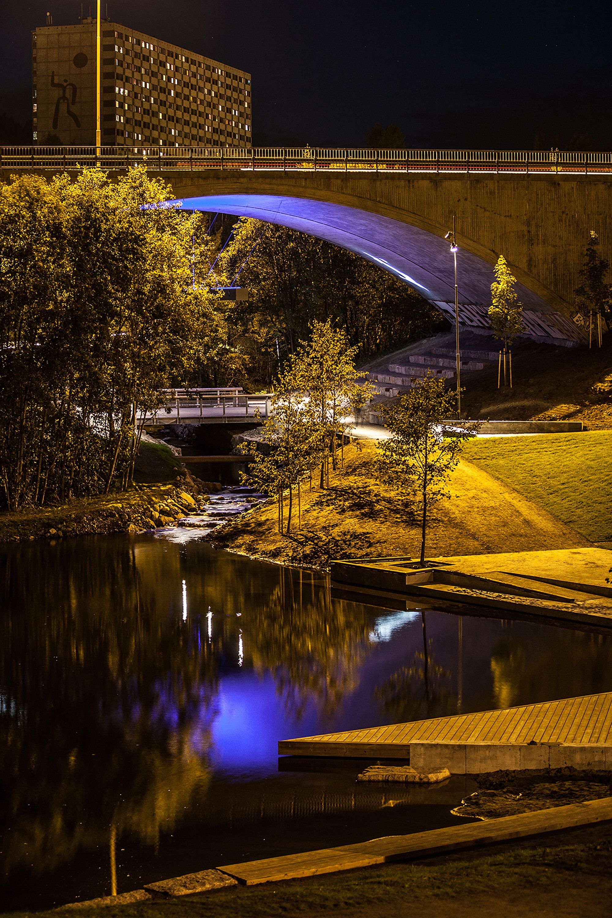 The project establishes a continuous landscape and recreation corridor from Lillomarka, via Grorudparken, through to Leirfossen (waterfall) and Hølakøkka. The River Alna is the central element of the landscape master plan, which integrates existing cultural and historical artefacts with new landscape experiences, while also facilitating greater visual and physical access to the river itself.