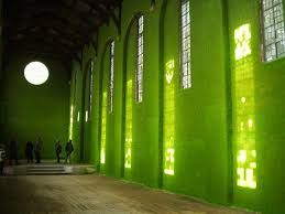 The artists saw the abandoned church as ‘inert, brooding and boarded up’. It was an ideal location for this project which has been in the works since 1990 after the artists’ first collaboration. The living internal skin brings life and a certain voice back to the church. When the light hits the grass through the plate glass windows it is as if the space is singing. On that note, the collaboration with Graeme Miller, whom Ackroyd & Harvey had worked with previously on other site-specific projects, sought to develop a sound element to the work which was ‘integral to the resonance of the space and the artwork’.