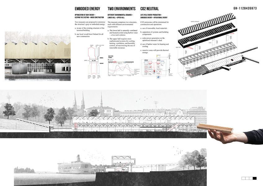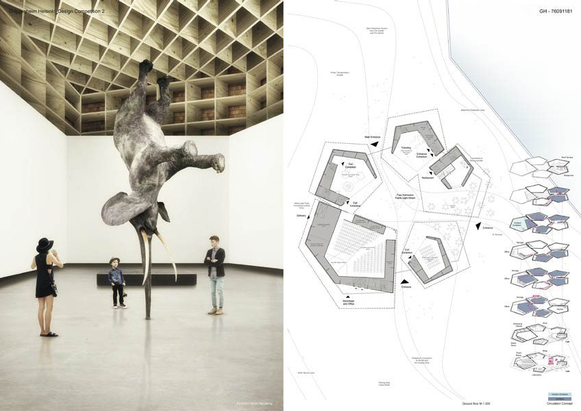 The latest addition to the Guggenheim family is intended for Helsinki, Finland as it is considered as an emerging city globally, situated as a city between the east and the west (designguggenheimhelsinki.org). The Guggenheim Foundation, after extensive research decided on a site situated in the south harbour in Helsinki. The site is situated close to the historic city centre and is immediately visible to visitors arriving into the city by sea (designguggenheimhelsinki.org). The city of Helsinki has a 2050 plan for the city regeneration which includes this particular site as part of the upgrade for the city, which further highlights the importance of this particular site. The museum is meant to exhibit art from the 21st century as well as focus on Nordic art and architecture. As with all the other Guggenheim museums, the Helsinki museum is meant to be a creative display of architecture to match the exhibited art. In respect to the theme of the museum, that being 21st century art, the competition brief included aspects to incorporate in designing the building that would not only match the theme, but in itself become an icon representing 21st century art that would be internationally recognisable as part of the Guggenheim family or brand. Much like with current architecture, spaces should be inter-disciplinary and flexible to accommodate different uses as well as future possible uses. The brief also includes the sizes of the museum which totals to approximately twelve thousand square metres, four Thousand of which should be solely dedicated to exhibition space. A major part of the brief includes sustainability in keeping with 21st century architecture and lifestyle. It particularly highlights the use of bio-economy as Finland leads the world in sustainable bio-economy (designguggenheimhelsinki.org: brief).
