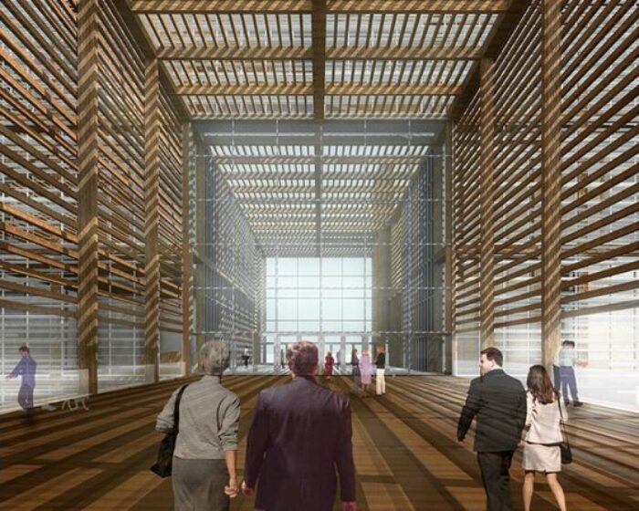 The “veil” is supported by wood structural frames, which in combination with the slats help the simple shapes to stand out. The building is in symbiosis with the grid of the city, with the bicycle route incorporated or the bridge between the Tähtitorninvuoren Puisto, the design museum and the museum of Finnish architecture.