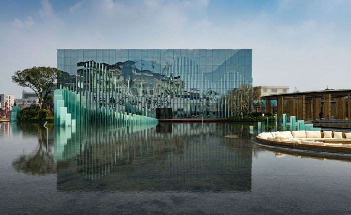 Compared with those projects with huge volume and complicated functions, this exhibition center is an undeniable architectural sketch. During the creating process, we want to make it simple and relaxing. We give more consideration to the pureness of concept and operability of implementation. At that time, what we considered is mainly shown as follows: 1. From shape to connotation: How to manifest the connotation of “landscape” in the traditional Chinese culture by simple architectural language? 2. The depth of space in external surface construction: How to express the stratification of landscape and depth of space by the surface treatment? 3. Scenery direction of the material composition: How to build an implicit object with fuzzy boundary and overlapped layer using different reflection, refraction and transmission performances of glass together with the digital-colored glaze glass in order to create an enshrouding natural landscape? In a word, the whole design starts from construction and context.