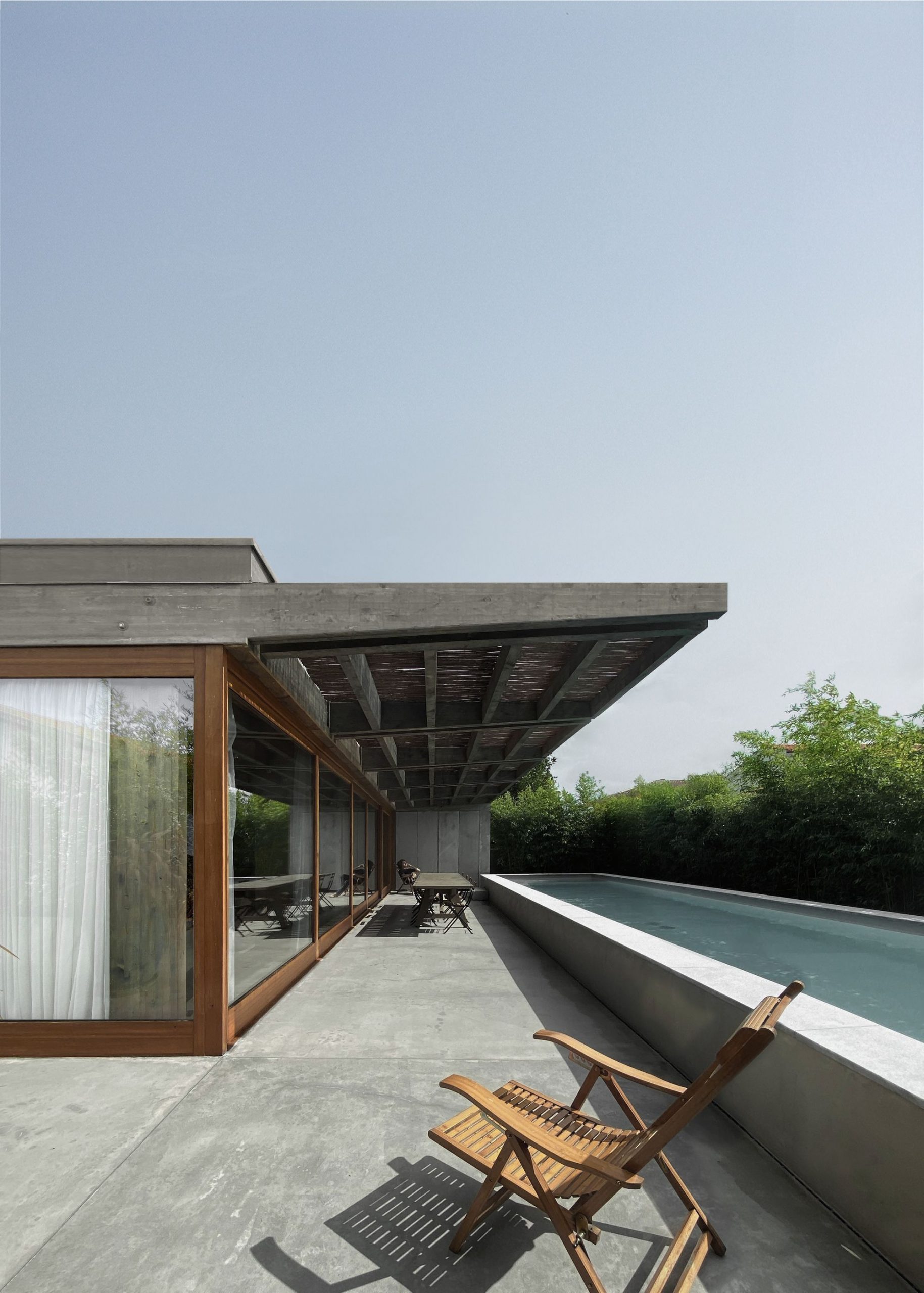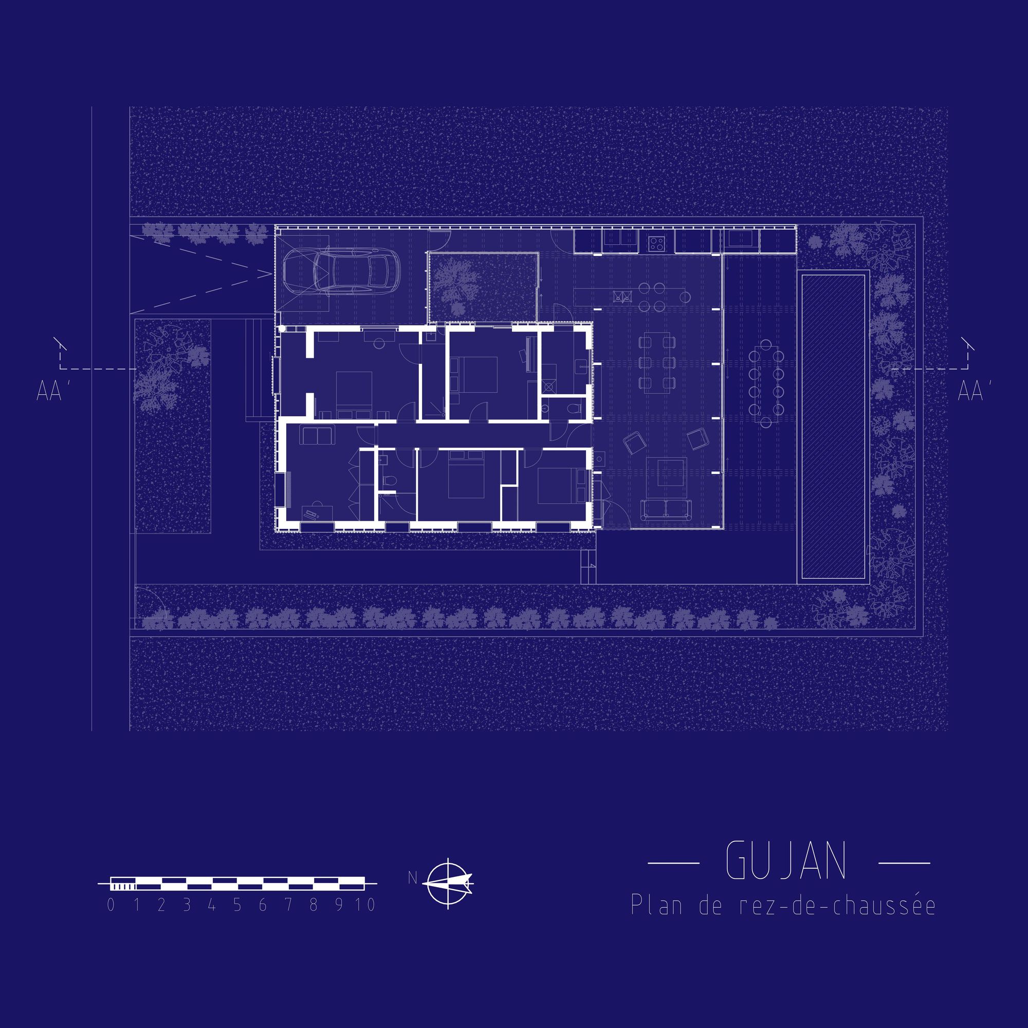 The project is located in the Arcachon Basin, in the town of Gujan-Mestras in the South West of France. This is the extension of a 1970s pavilion on a very small plot of 495 m2.