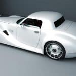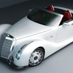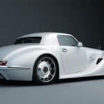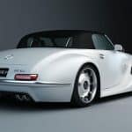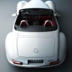 Gullwing America 300 SLC, commissioned by an anonymous Eastern European car enthusiast who dreamed of a modern car combining the 1955 SC from Mercedes Benz with the performance of a 2014 SLS, a dream realized by Gullwing America, which created the 300 SLC. The car keeps the big mesh grille of the original, only leaning it back a bit more, while the headlights are bigger and sweep back farther than the original.