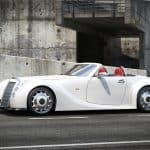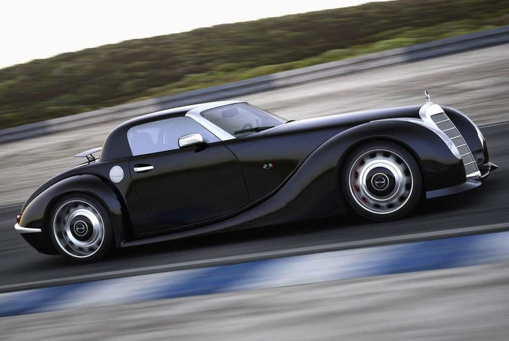 The doors are customed to fit the running boards, which flow and merge into the rear fenders. The design includes a retro style “tail”, with petite taillights and a chrome bumper, with the inscription with “Einspritzmotor” (“Injection engine”). The front wheels are smaller than the back ones, measuring 21 ‘’ while the back ones are 22 ‘’.