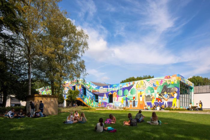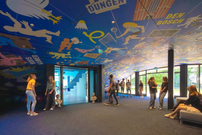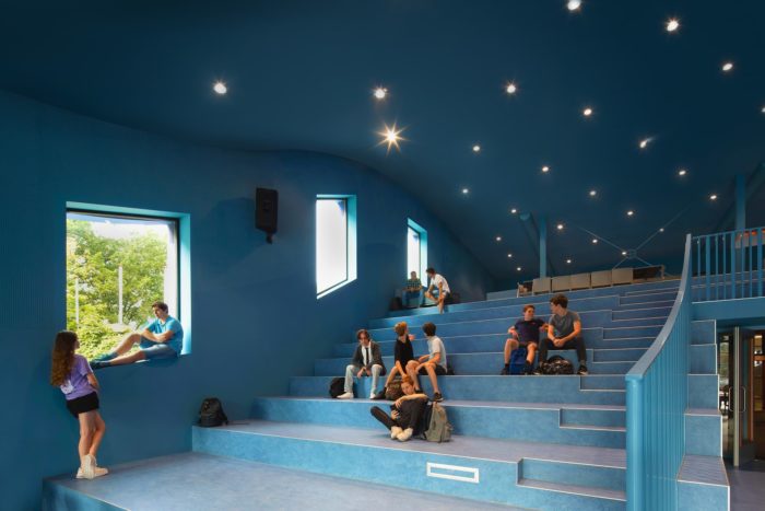 One of the standout features of the revamped Gymnasium Beekvliet is the addition of a sky-blue auditorium that will serve as the school’s new heart. This move signifies a commitment to modernizing the school’s facilities while maintaining its legacy. The building’s extension, enriched with a panoramic work by visual artist Ian Kirkpatrick, intertwines the stories of former pupils, passers-by, and board members with visions of the future.