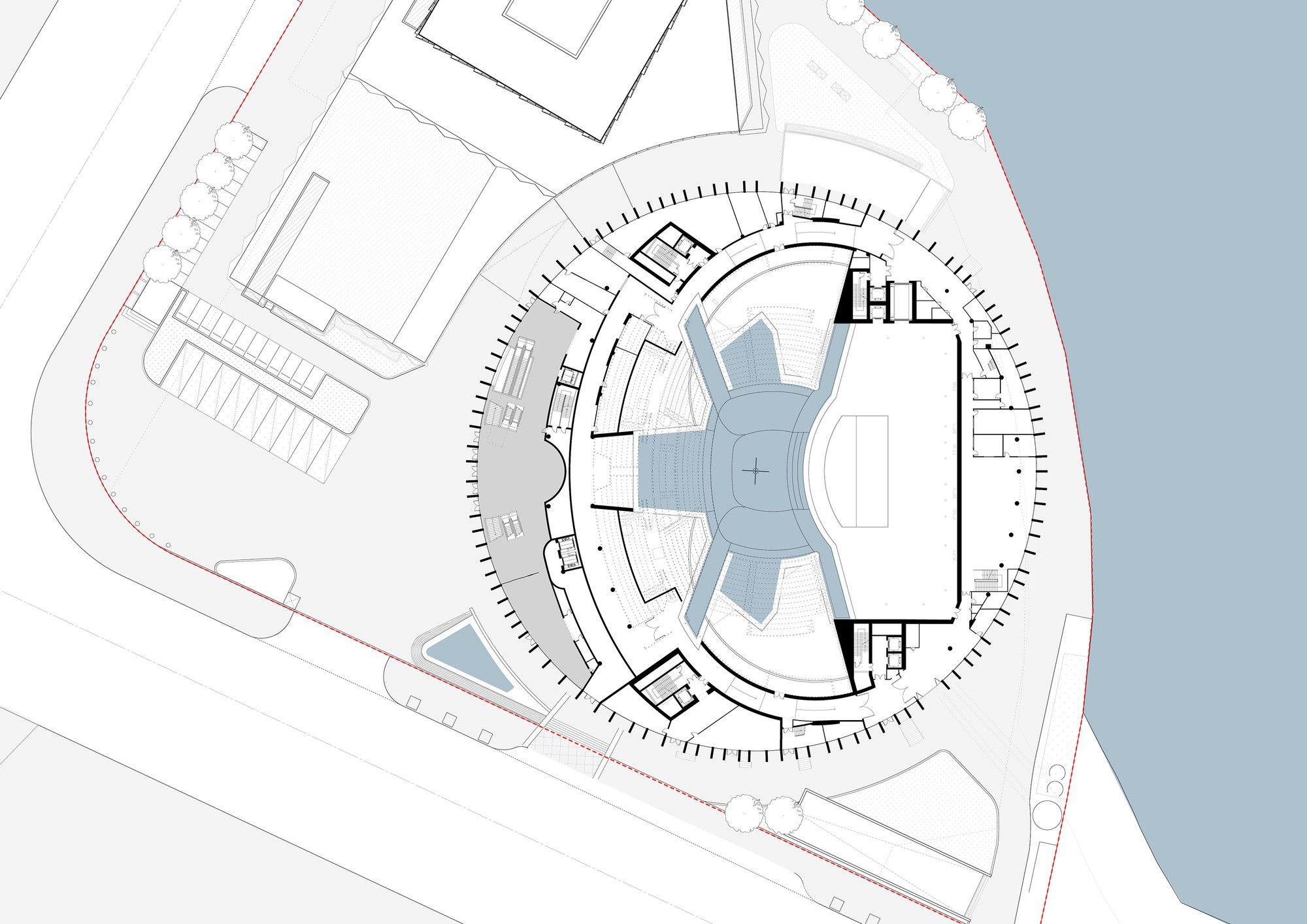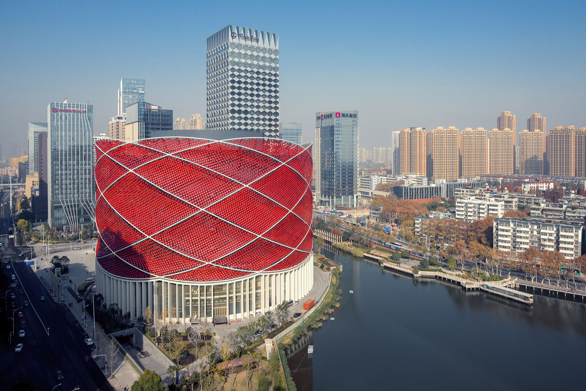 Stufish Entertainment Architects designed The Han Show Theatre in Wuhan, China. This theatre provides the building and staging for a new water show by Franco Dragone. Located in the central Chinese city of Wuhan, it forms the anchor for one end of a major development by Beijing-based development group Dalian Wanda.