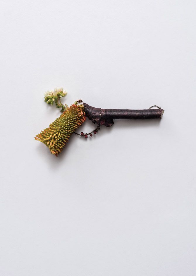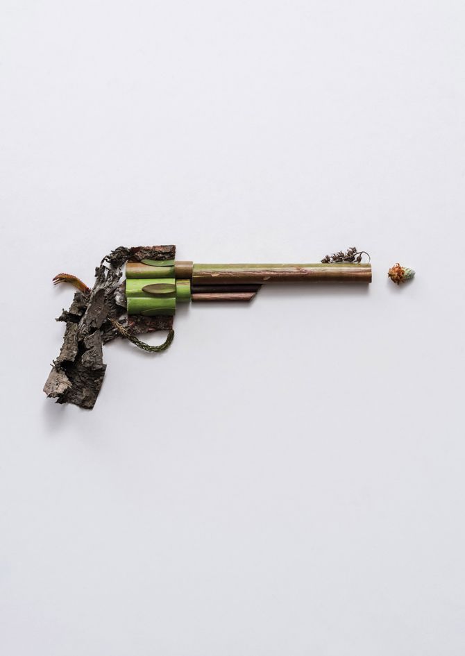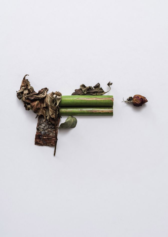 In the meantime, this series by Sonia Rentsch titled Harm Less is a more analogue, non-lethal form of 3D printed gun to present a bit of enjoyment. Composed of elements ranging from bamboo to seedlings, to bark and flowers, these photographs speak of both the frailty and resilience of nature. Humanity is also subtly present in the works- its use of nature as well as its confrontation against the systems which support its survival.