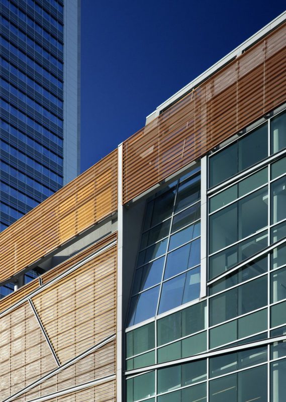 The Center’s stairs and escalators, together with the articulation of the central atrium, pay tribute to “Jacob’s Ladder”, linking the building to its historic context and to African American culture. Functionally, elevating the main lobby to the second floor allowed the truck and car ramps to enter the site without interrupting the logical flow of the building’s interior space.