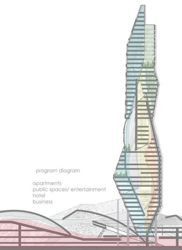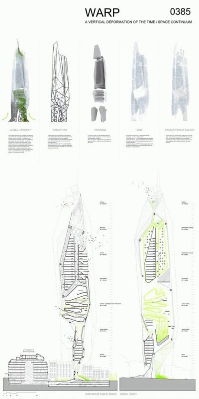 Clara Tresgallo Parés’ innovative skyscraper proposal evolved from the twisting branches of mangrove trees surrounding the building site in Hato Rey, Puerto Rico. With this proposal Parés seeks to inspire her countrymen while providing a structure they can identify with, inspiring new growth in Hato Rey by mirroring natural growth. The building starts with a strong base, it’s roots extending out to connect with the rest of the area, drawing people in and allowing for direct access to public transportation. From there the structure sprouts up creating spaces for house apartments, businesses, public spaces, and even a hotel.