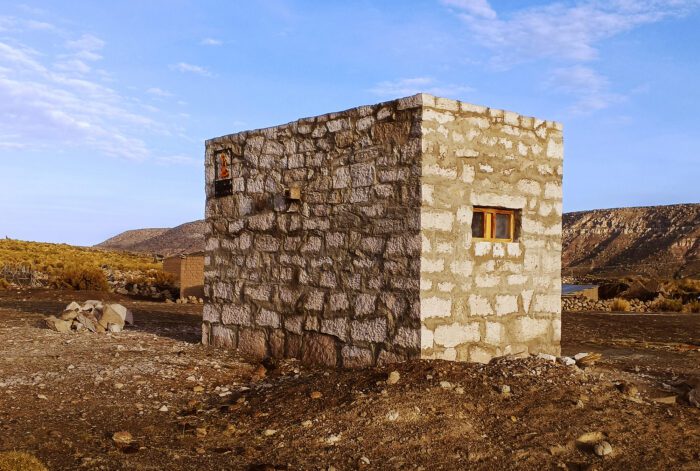 Health Tourism Module, The project protects the ecosystem, uses local materials, and safeguards the biodiversity of birds and plants. It aims to provide a comfortable, ergonomic, sustainable, and ecological environment. The driving idea is based on a modular grid, utilizing pink rock stone with stone toilets and sinks, rustic bronze faucets, and pine wood doors, whose properties withstand the extreme weather conditions of the Andean plateau. The orientation and access openings respond appropriately to sunlight and low temperatures. The module requires short-term maintenance, does not harm the local flora and fauna, and strengthens community customs.