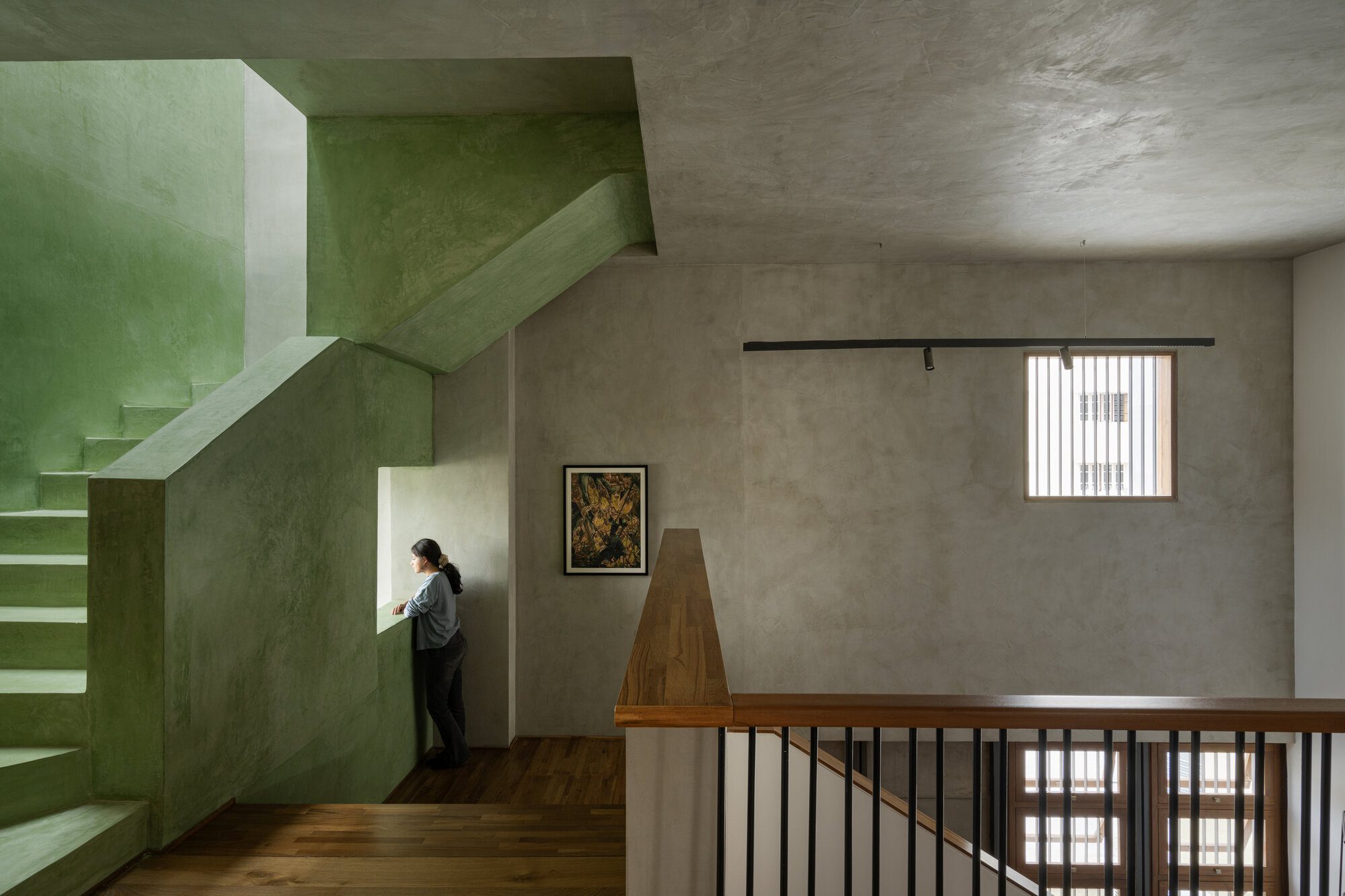 A Twin Home for Two Generations – The design response came in the form of a twin house: the older generation occupying the lower floors and the younger family living above. This vertical separation allowed both autonomy and proximity, enabling the two generations to maintain their lifestyles while staying connected. On the lower floors, proximity to the street and garden offers easy access, sociability, and rootedness—ideal for the elderly parents. The upper floors, in contrast, are introverted and sky-facing, shaped around openness, privacy, and spatial flow. Yet, these vertical divisions do not result in isolated units.