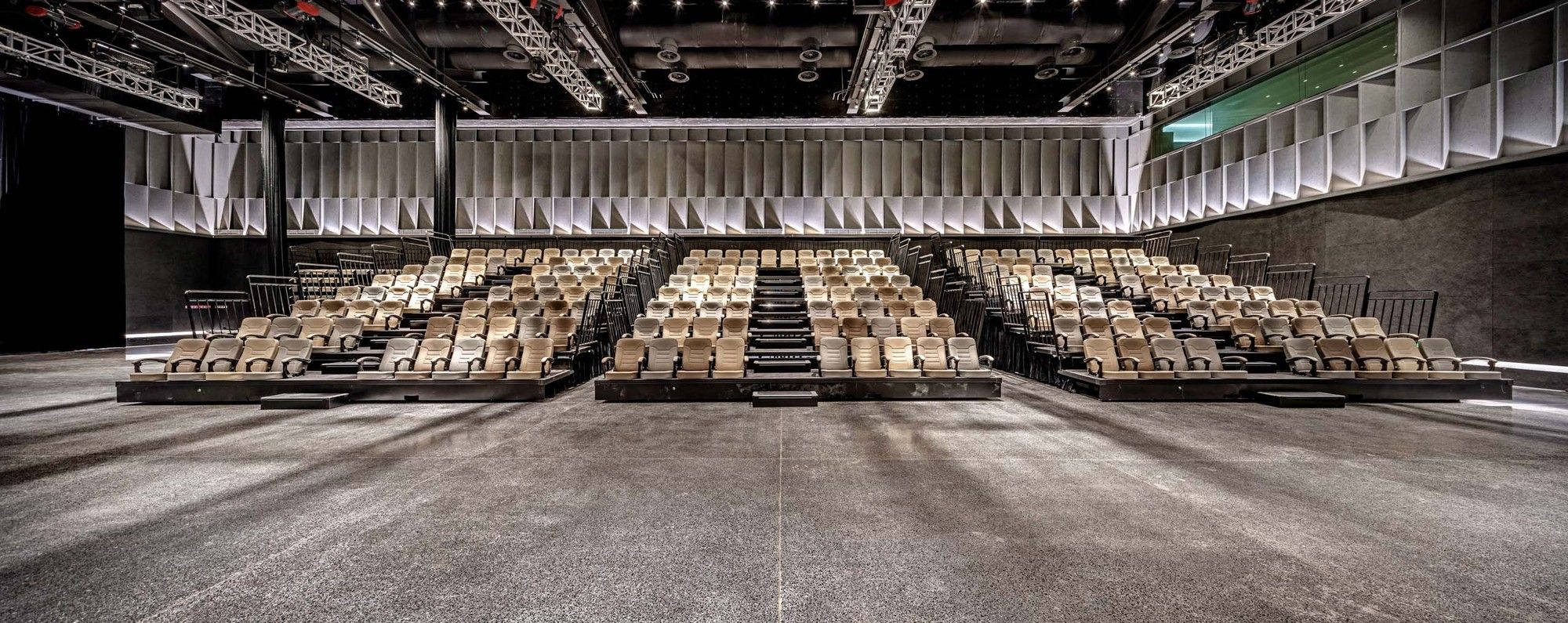 The building, with 3,300sqm, consists in three basic segments: entrance hall with HeyGallery on the second floor, connected through a large spiral stair; central space that switches between a theater with 500 seats or open up as exhibition space with a series of large pivot doors opening to the plaza; back of house zone with function rooms. In addition, there are also a bookstore/shop, an art education studio, a double-floor linear gallery, among many other support spaces.