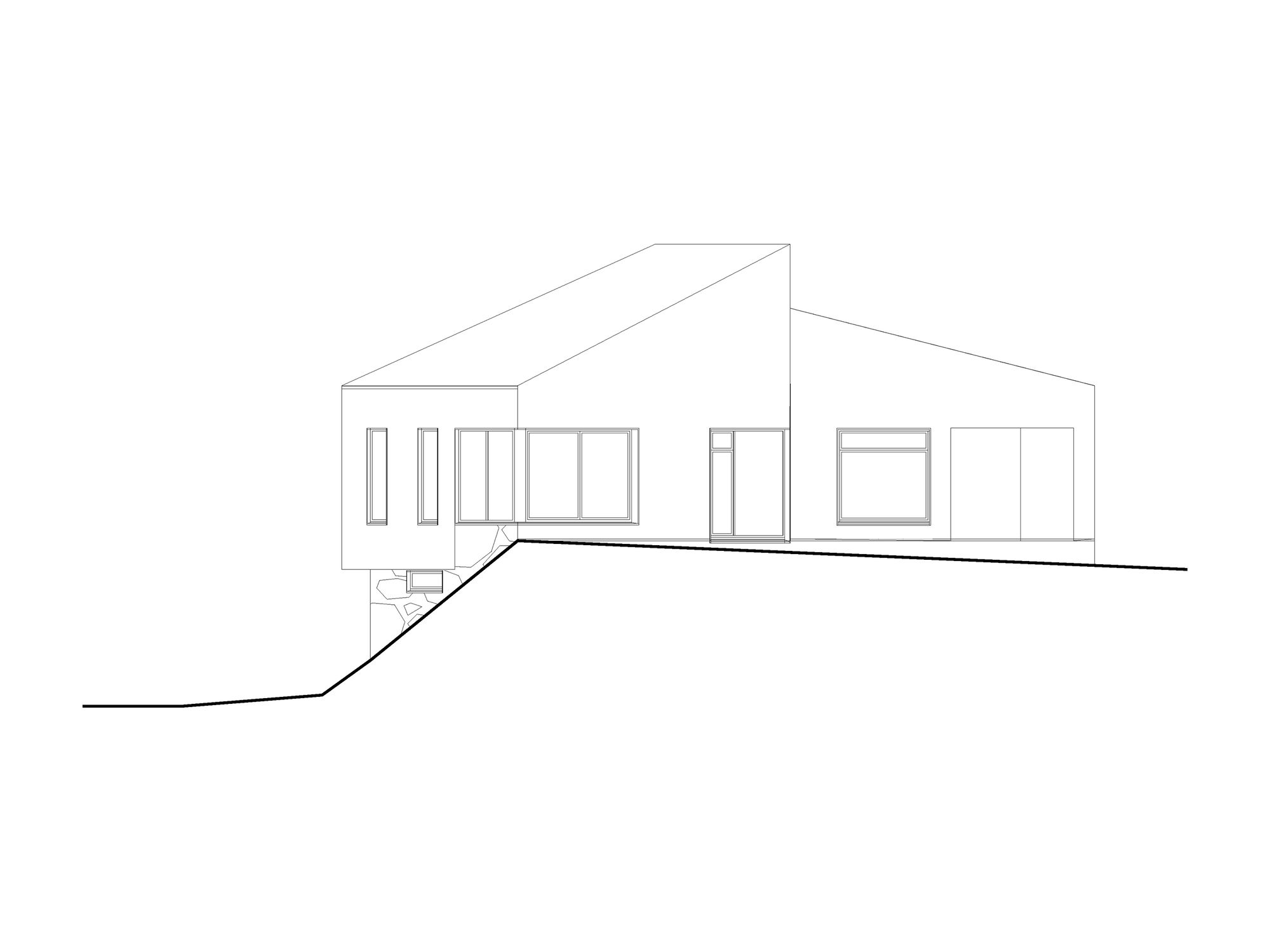 The organic topography of the hill area inspires the architectural concept of Hill House. Consequently, the lower floor is designed as an extension of the hill, accommodating spaces such as a garage, storage, and utility rooms within House.