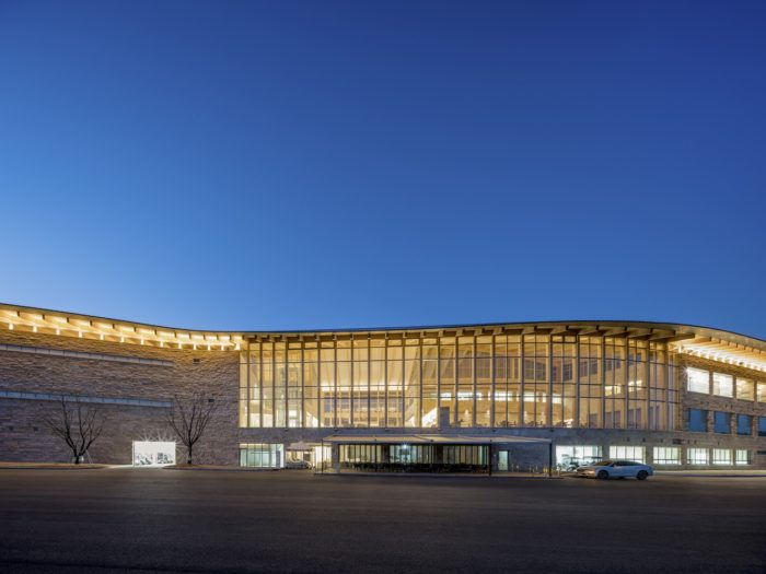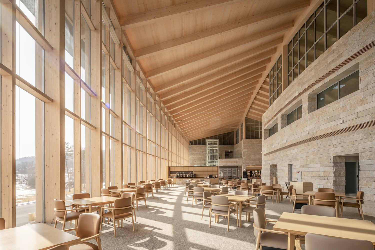 Functionality melded seamlessly with architectural elegance through the canopy, which ingeniously incorporated elongated wooden spans and minimal structural columns. This clever design accommodated four drop-off car lanes while emphasizing the visual allure of the roof structure.