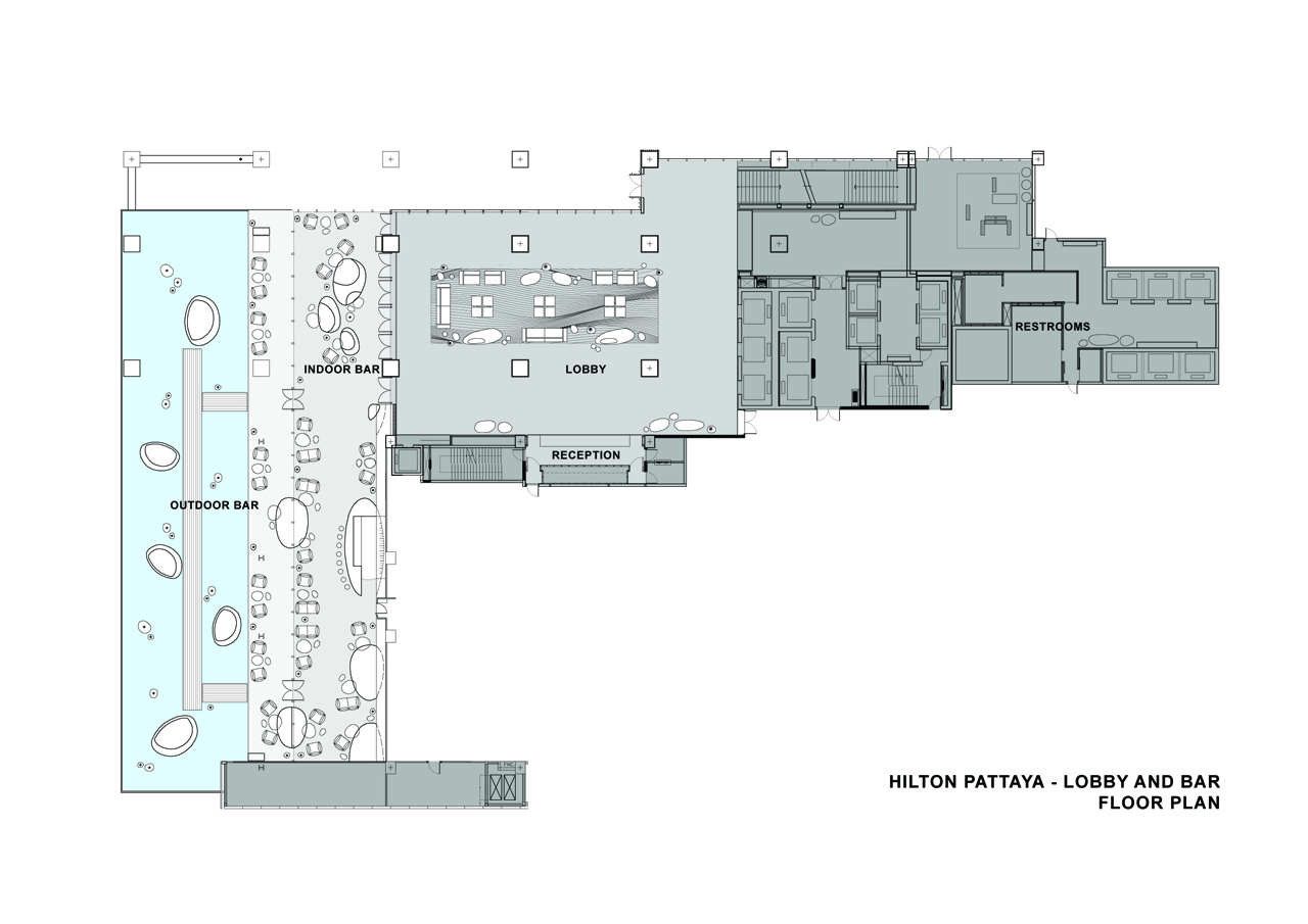 Department of ARCHITECTURE is responsible for the interior design of various common areas for Hilton Pattaya Hotel which includes the First Floor Lobby, the Main Lobby on the 17th floor, the Bar, and various common area and linkage spaces within the building. The hotel is part of a larger multi-used complex located in the heart of Pattaya, overlooking the Pattaya beach.
