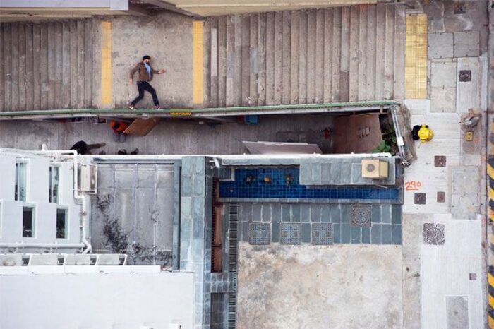 Created for an ad campaign promoting the shoe company Jim Rickey, these wide-angle photographs taken by the Stockholm-based photographer, Christian Åslund, create an interesting perspective that, while not a brand new idea- are certainly still worth it. The images utilize the streets and features of Hong Kong as backdrops alluding to retro 2D video games.