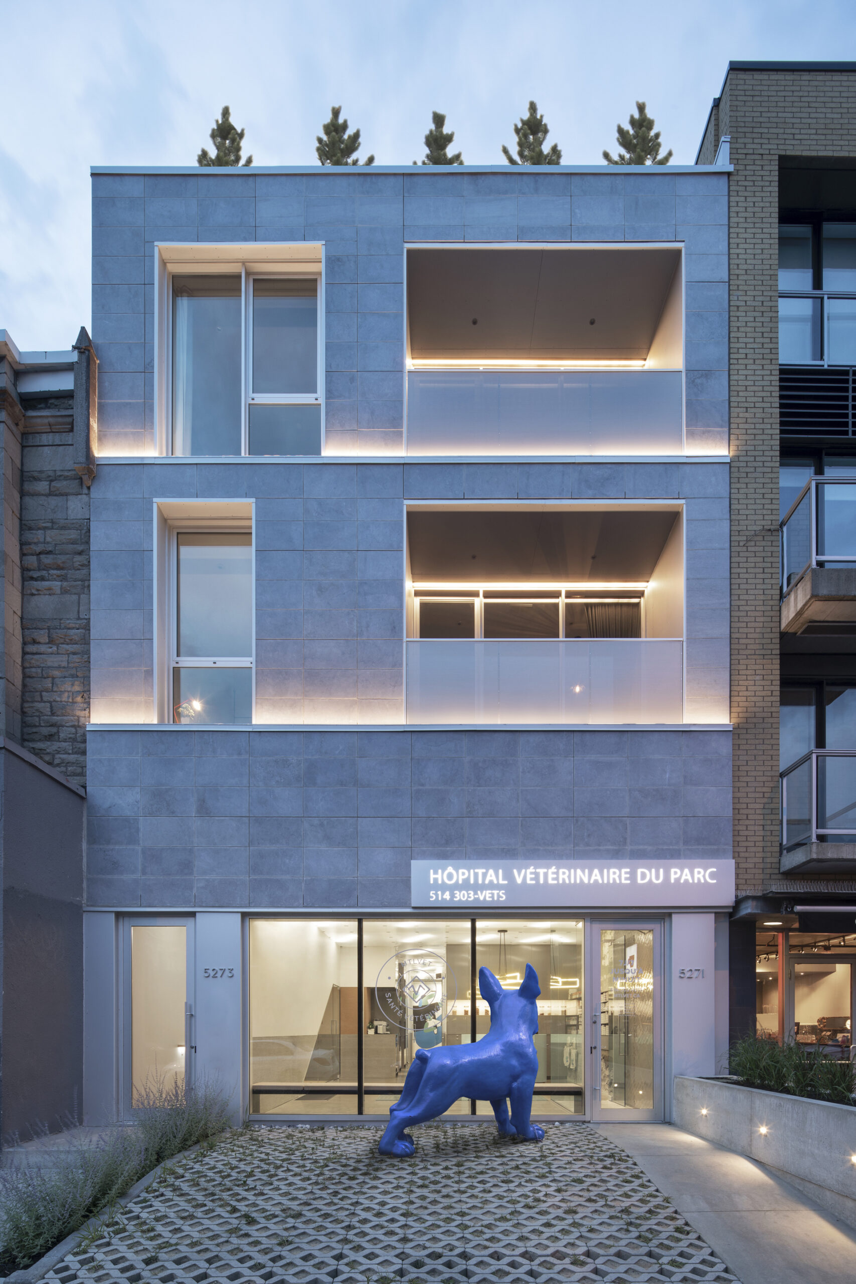 Hôpital Vétérinaire du Parc, A mixed-use renovation and extension, HVdP squeezes a state-of-the-art veterinarian hospital, SPCA emergency clinic, and four residential units in and on top of a small abandoned photo studio.