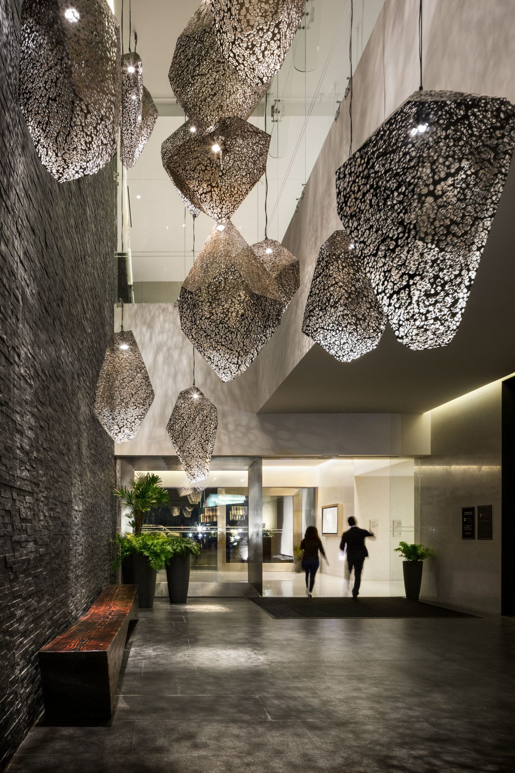 The hotel experience begins from the ground floor motor lobby, which includes several retail spaces, together with meeting rooms and a mini ballroom in response to the commercial requirements of the area. On the following levels, the hotel amenities such as the Lobby Lounge, Bar, Restaurant and the main Ballroom are on the first floor, while the pool, gym and an exclusive members club are located on the next floor up.