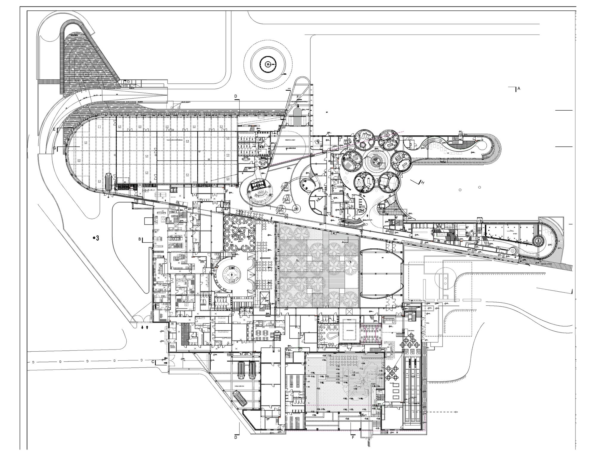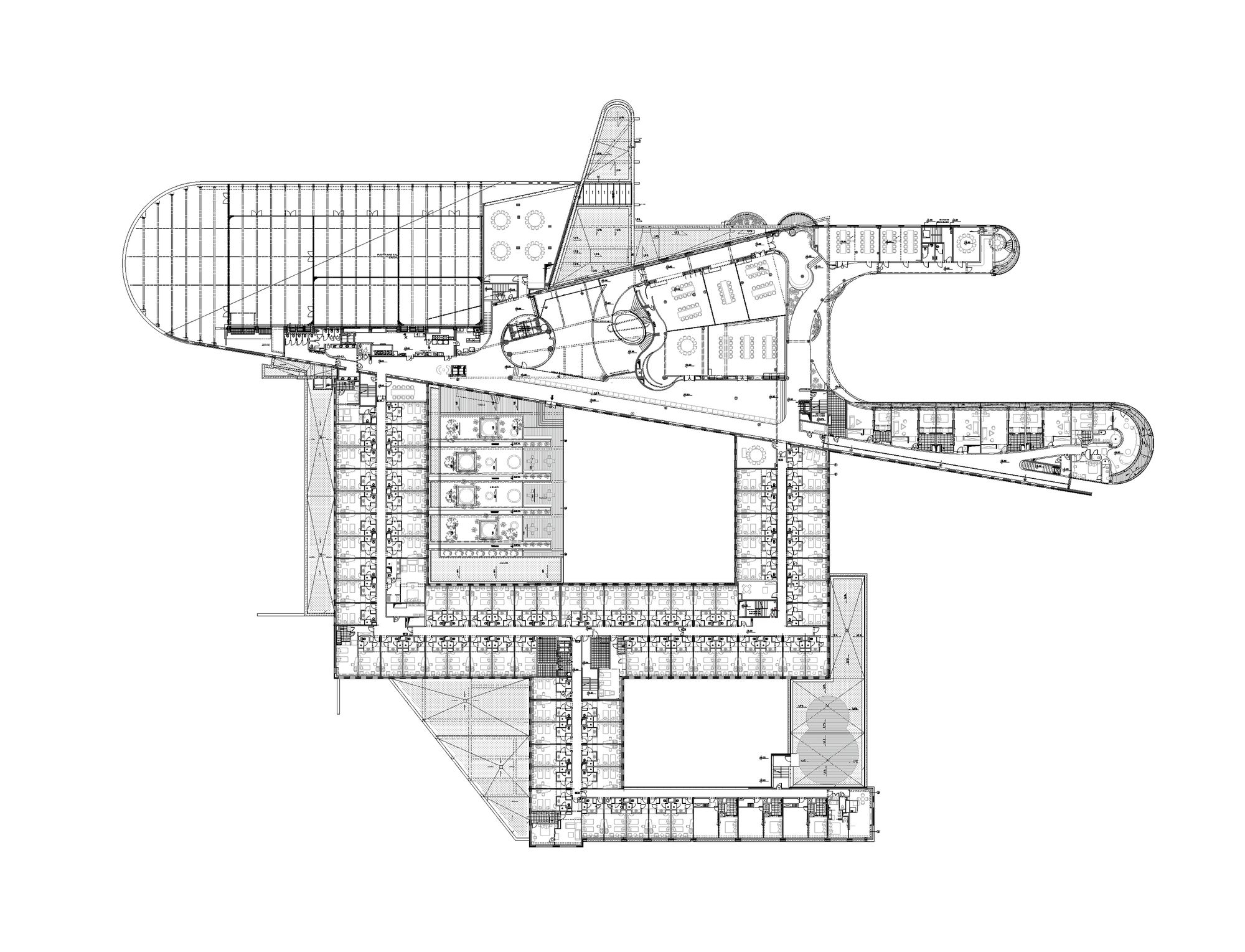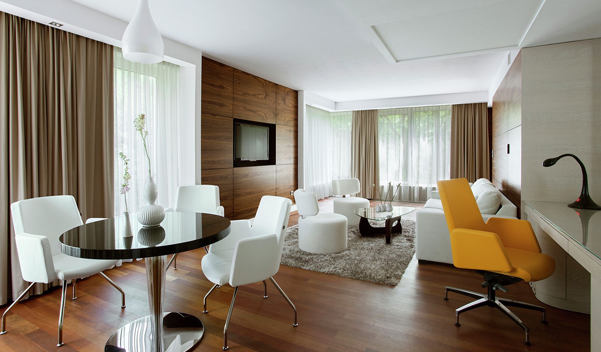 Surrounding trees were the main inspiration for design concept of the hotel. Their beauty, age and energy had an impact for the way of thinking about the project. Picture of lime tree’s crown became an impulse for creating organic wall which extends from cafeteria, corridors, apartments, swimming pool and Spa.