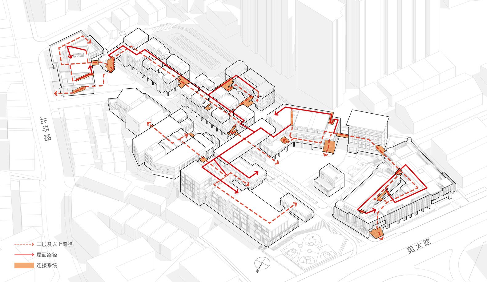 The architectural complex is a shot of the history of modern economic development in the Pearl River Delta. This was a factory site in the town center, faced with increased consumer demand by the local population and evolving consumption trends. There was a dire need for diversified contemporary consumer spaces; thus, it became the ideal location for the new “Houjie Times” project. With this background, it is intended to respect as much as possible the construction logic of the original building while renovating it to express a new spirit of Houjie.