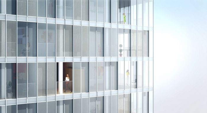 The building’s curving ‘waist’ avoid winds and the square layout is said to result in a net floor surface of 80% of column-free space and a 3.5m ceiling height. “The site for the tower is directly adjacent to a metro station, and building regulations initially restricted allowable construction to a 75 meter-high volume, which should be trapezoidal in plan“, stated Rotterdam-based practice in a press release.
