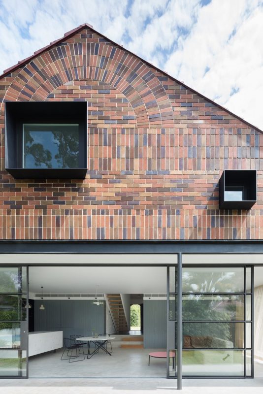 Form making is subtle – a ridge extended to create a gable, housing two new bedrooms a bathroom and a rumpus. Materiality is preserved – a celebration of decorative brickwork, lichen-covered roof tiles . We honored the heritage fabric of this house by using a level of quality and detailing in the new back garden elevation. The brick sunburst on the front appears in the new rear elevation, lead light windows to the front morph into steel framed windows at the rear. It is a kind of material palette call and response between the public and private faces of the building. Solid brass and marble hardware used throughout the house is from Tribe Studio’s collaboration, BITPART, designed and made in Australia.